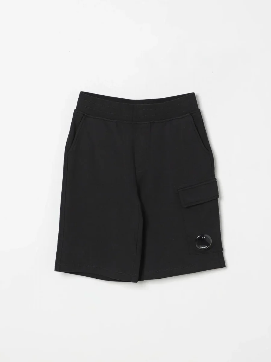 Shorts CP Company Kids, modello elasticizzato in vita, tasca cargo e iconico logo con lente, colore nero