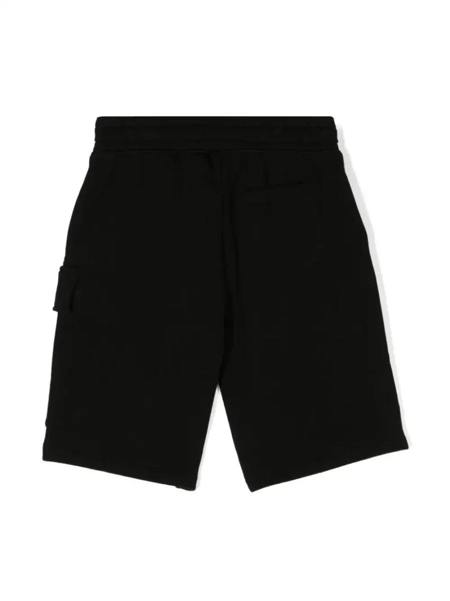 Shorts con tasconi C.P. Company bambino, modello elasticizzato, tasche laterali e tasca cargo laterale, logo applicato, colore nero