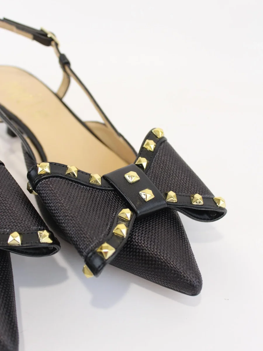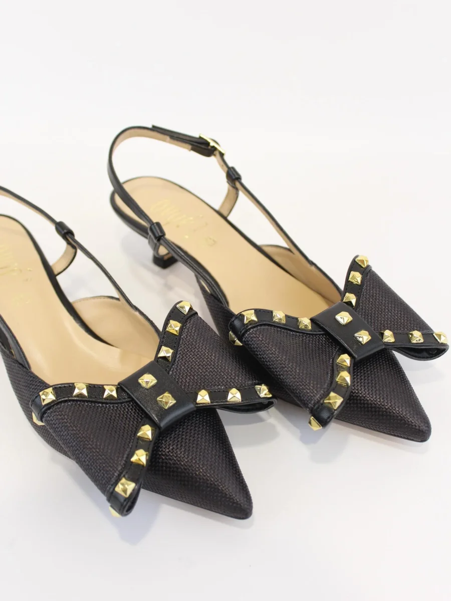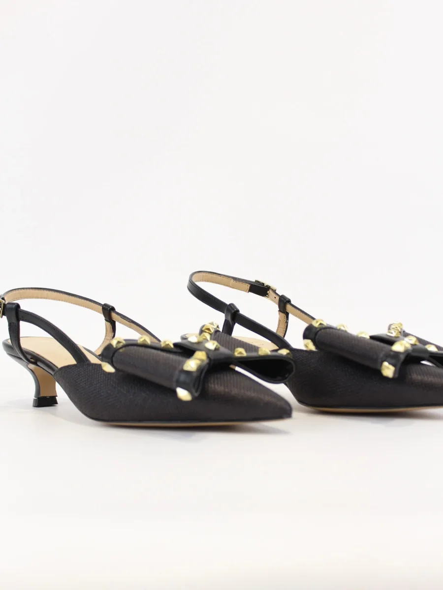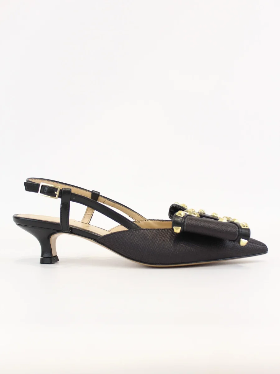 Slingback janice, modello in tessuto sintetico, inserti in ecopelle, applicazione con borchie e tacco 5 cm, colore nero
