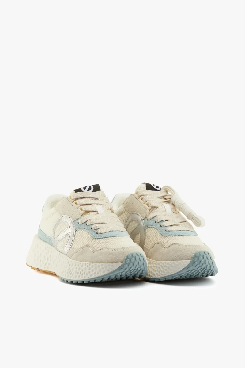 Sneaker in tessuto bianco sporco e camoscio sky