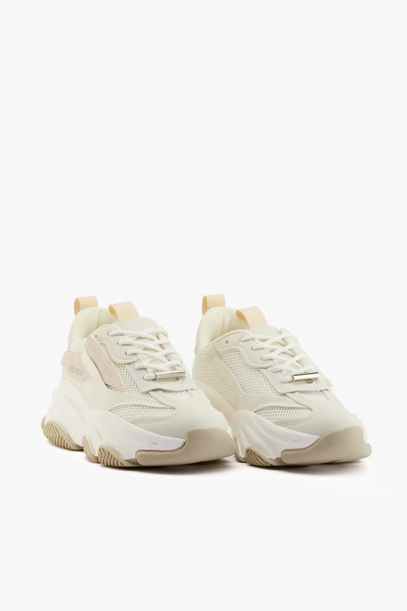 Sneaker in pelle vegetale e tessuto bianco/beige grigio