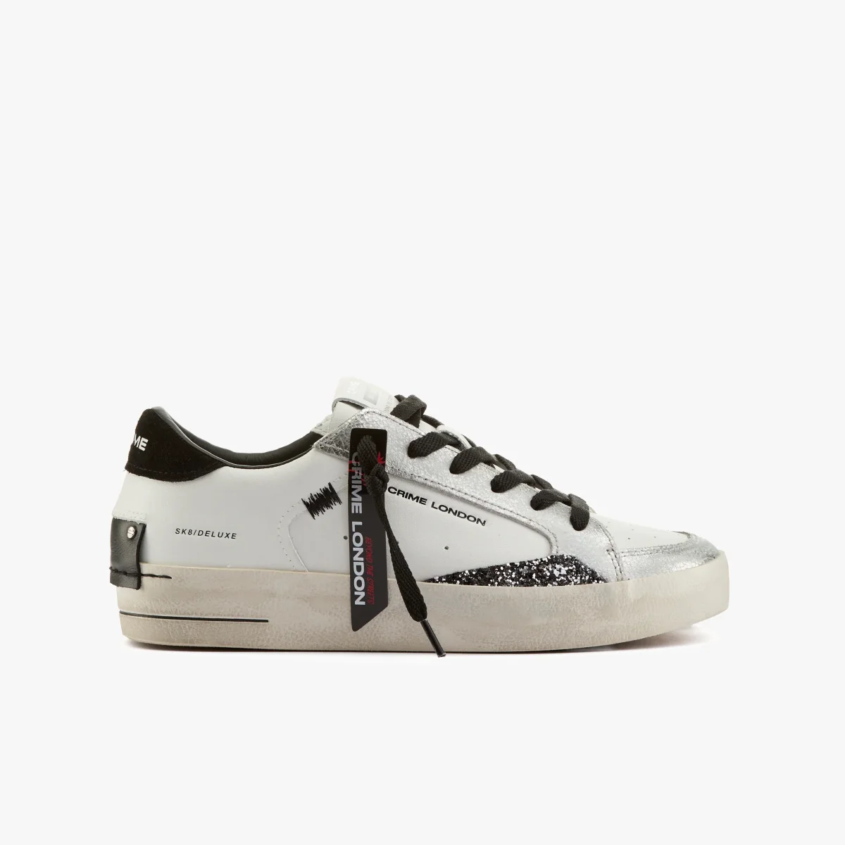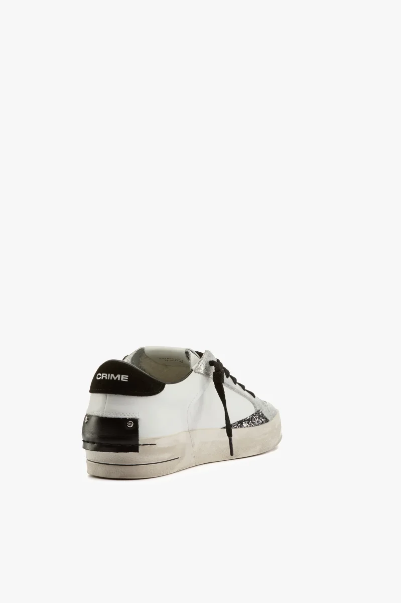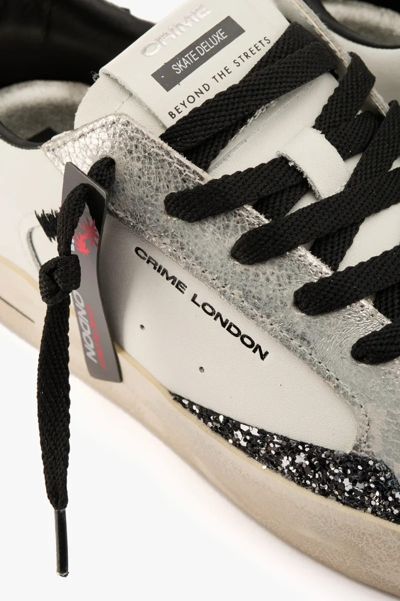 Sneaker in pelle bianca e argento laminato