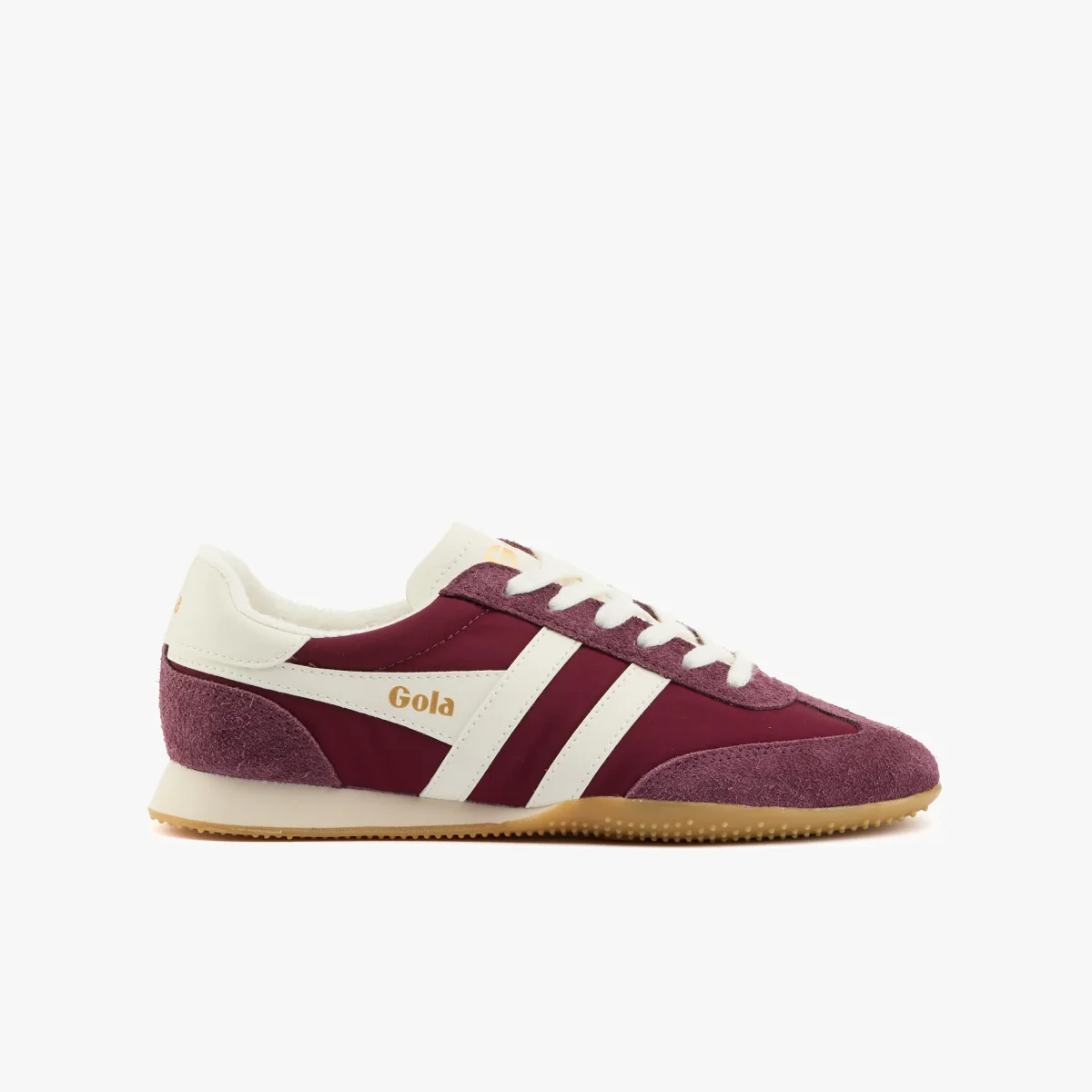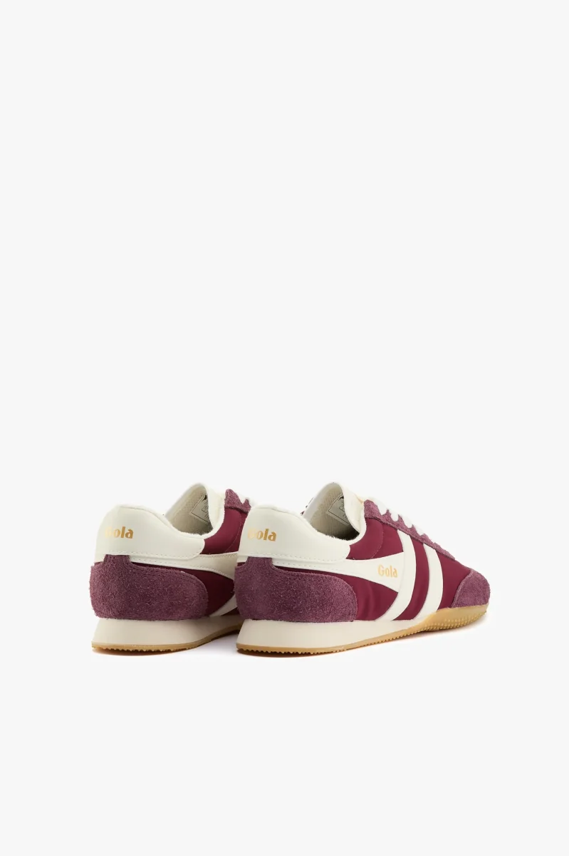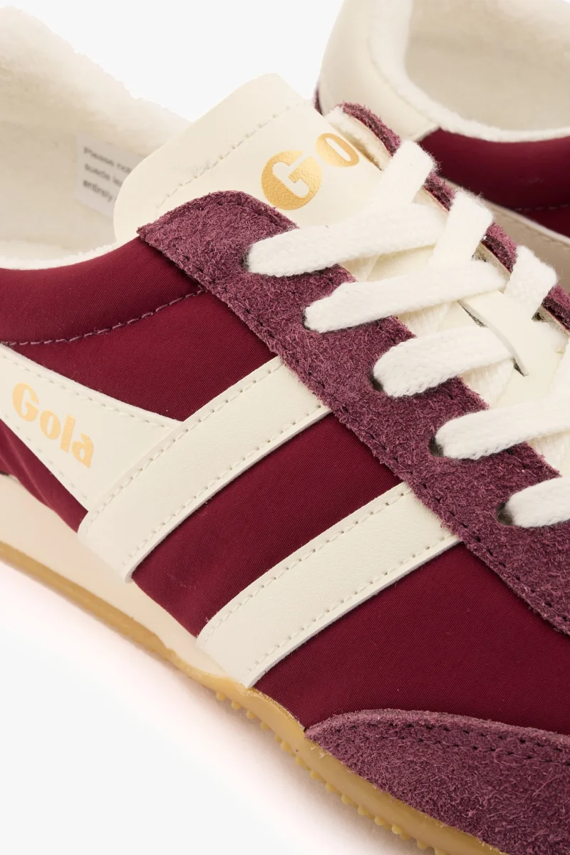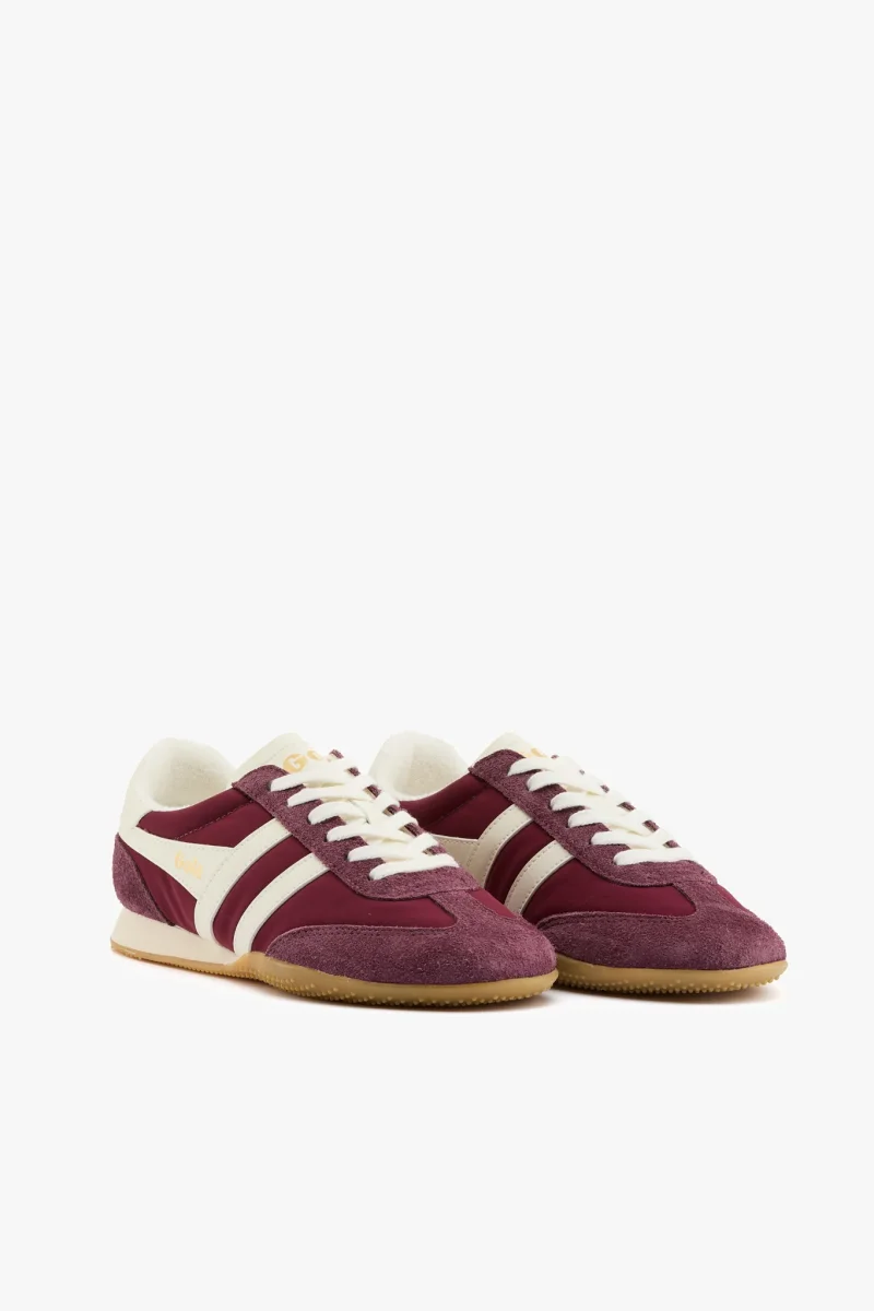 Sneaker in tessuto e camoscio burgundy con dettagli in pelle bianco