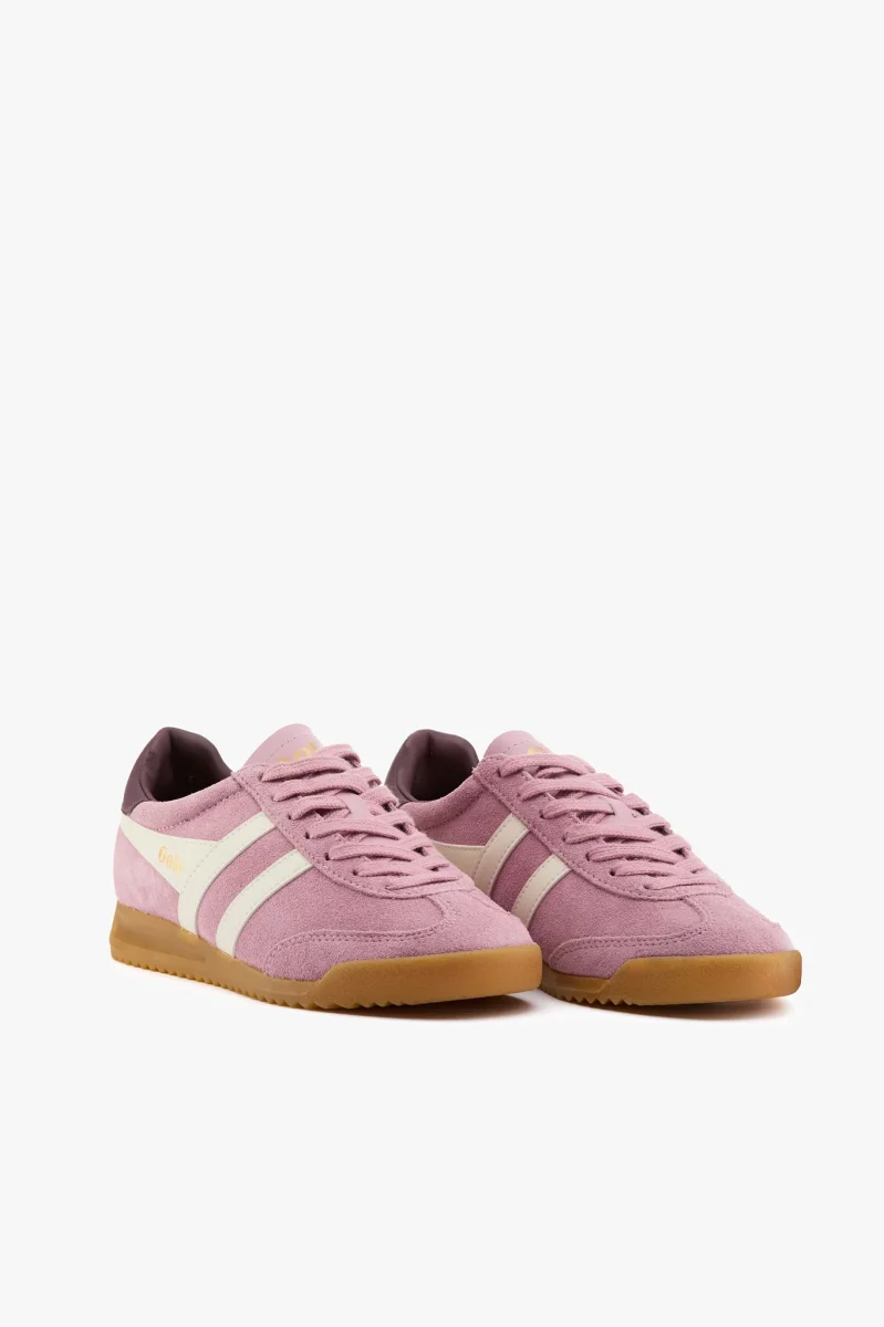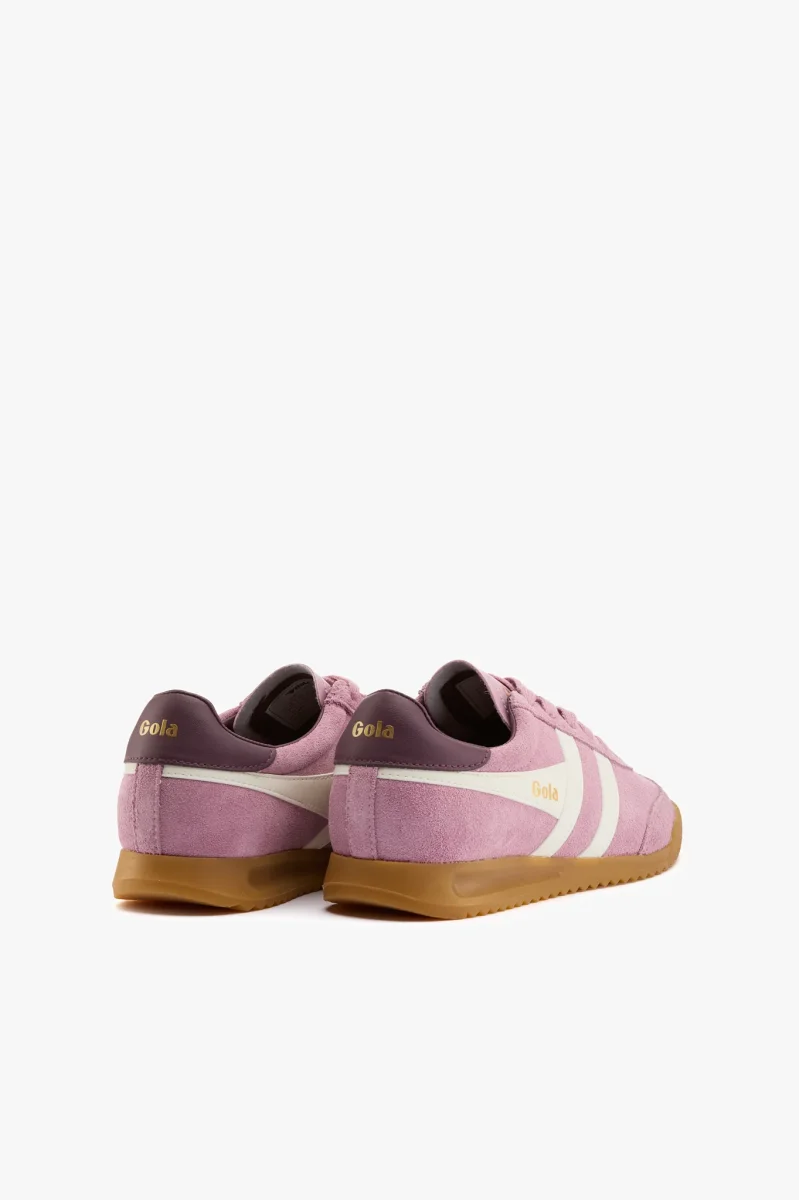 Sneaker in camoscio rosa candy con talloncino burgundy