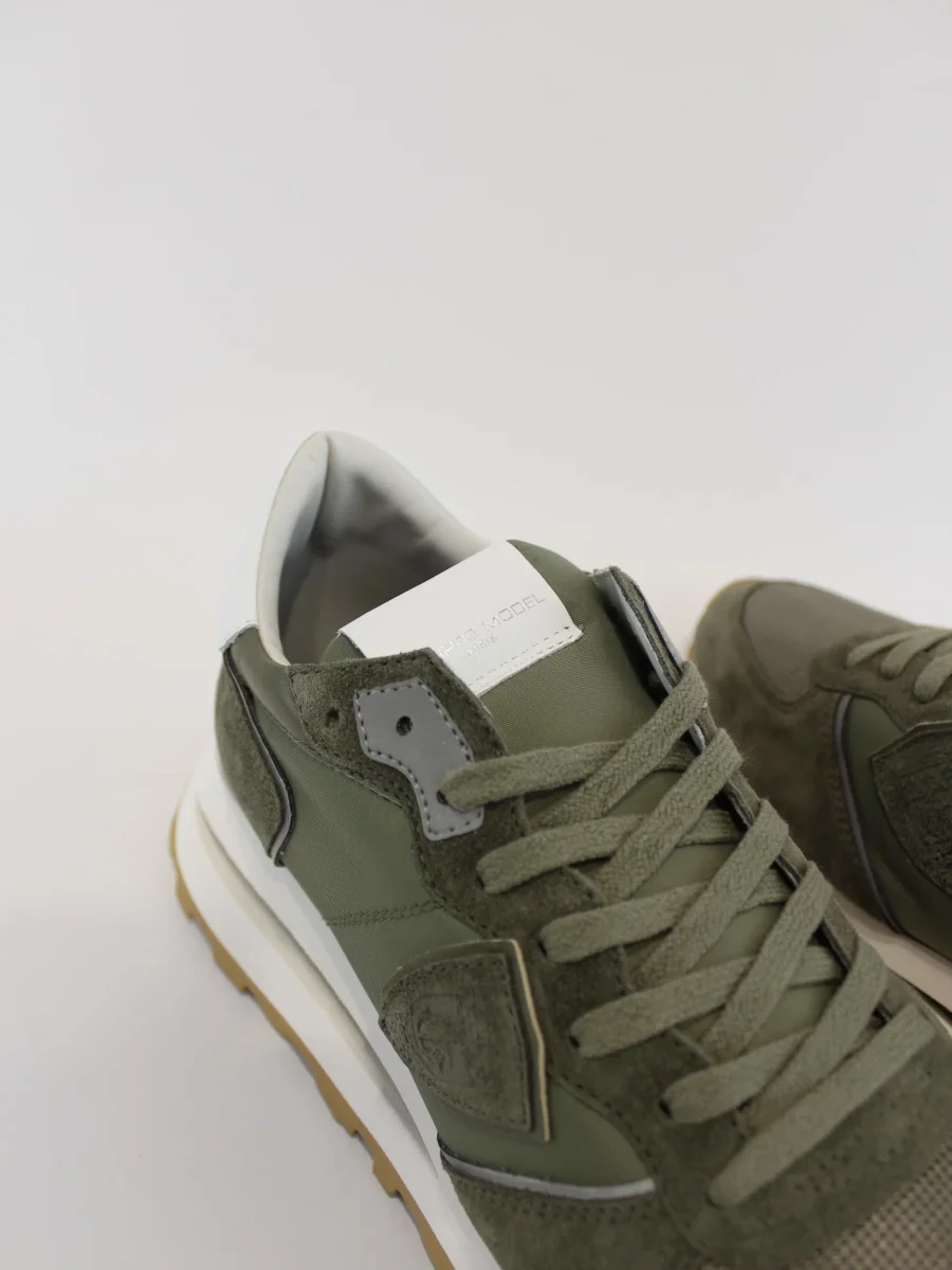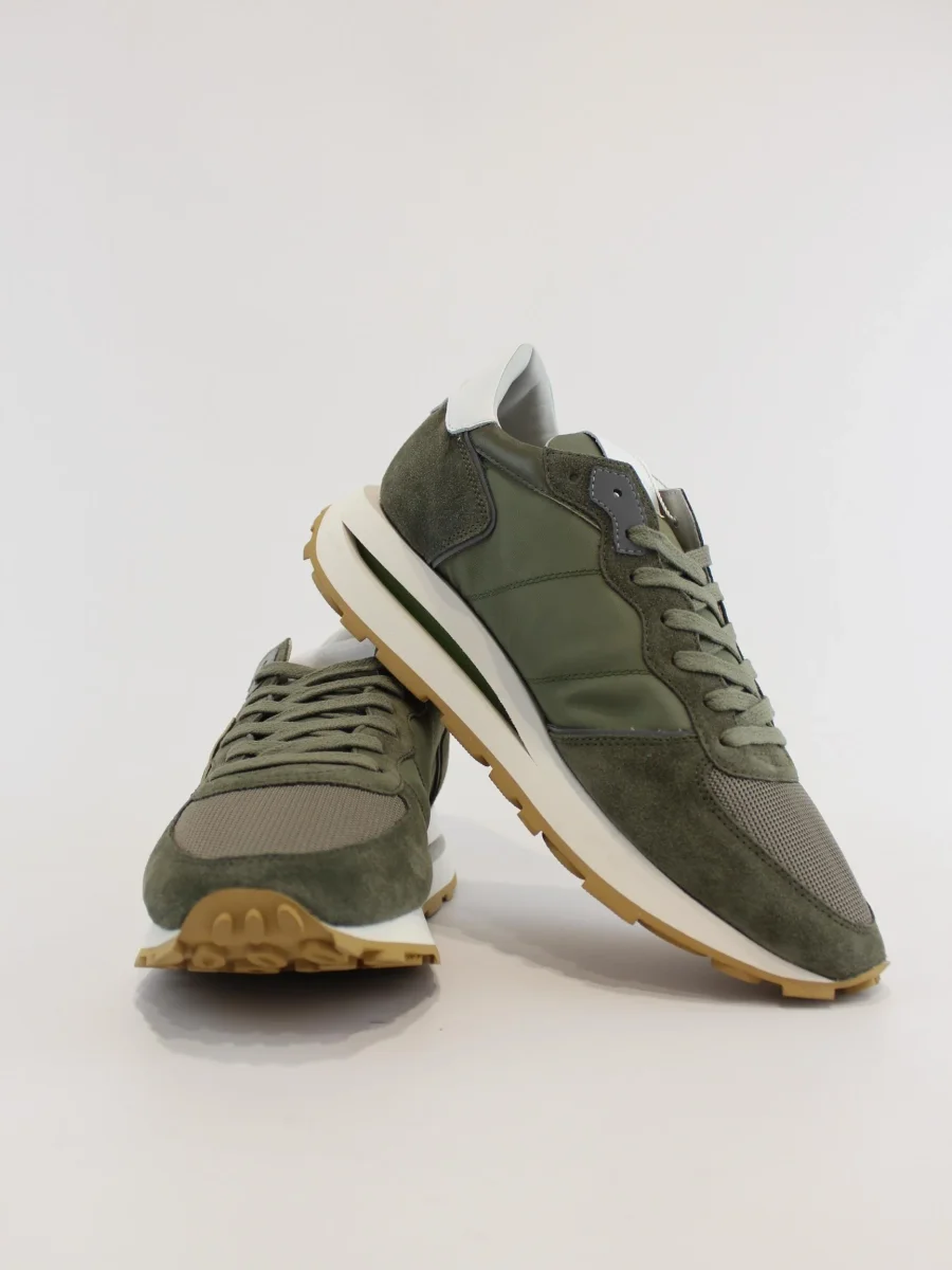 Sneakers uomo Philippe Model, modello realizzato in suede lavato color verde militare, con inserti in pelle liscia, suola in gomma ultraleggera, logo in contrasto. Altezza suola 5,5 cm