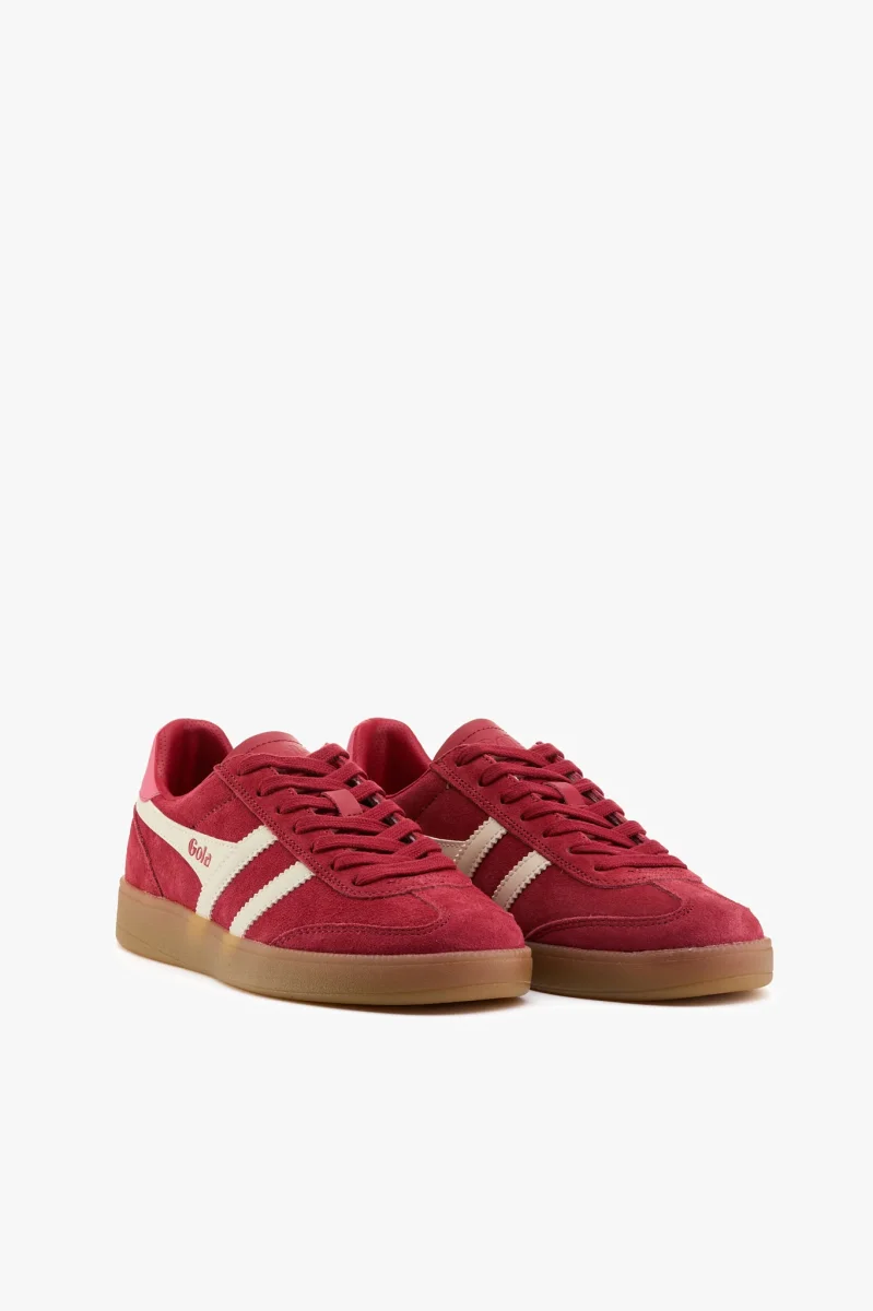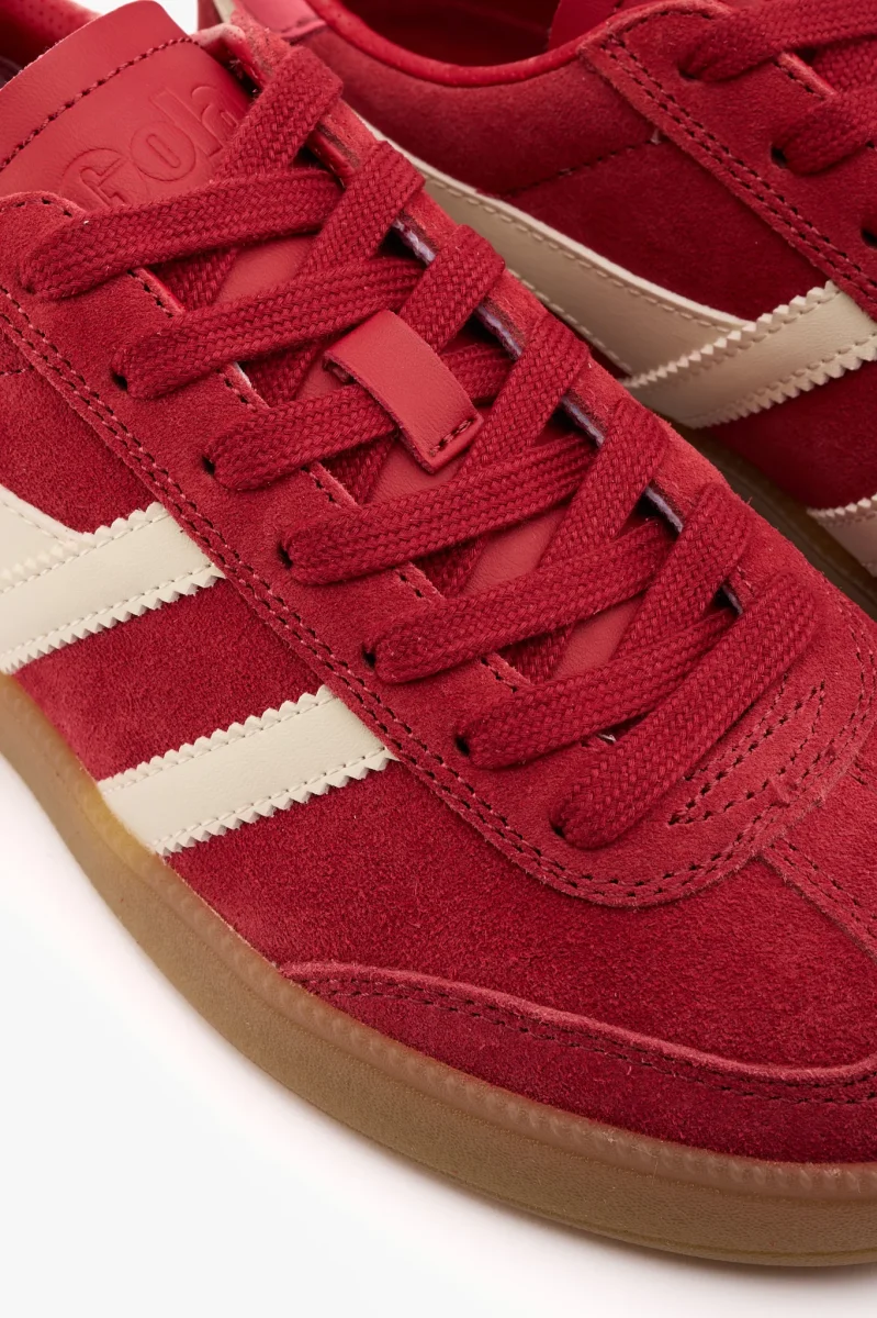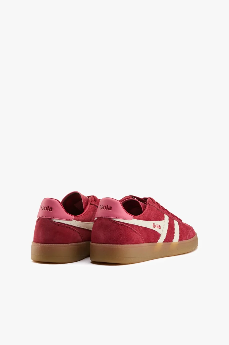 Sneaker in camoscio rosso con talloncino rosa