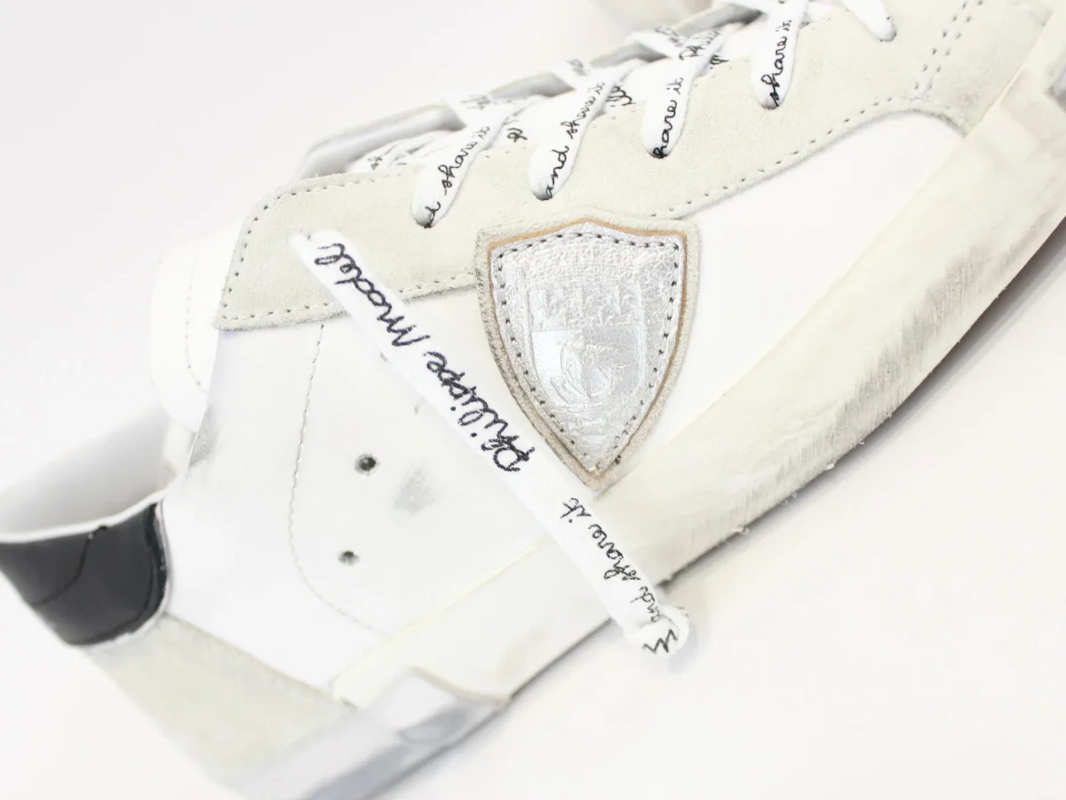 Sneakers Philippe Model uomo, modello street heritage, tomaia in pelle di vitello bianco con finitura used, suola in gomma, colore multicolor e retro nero