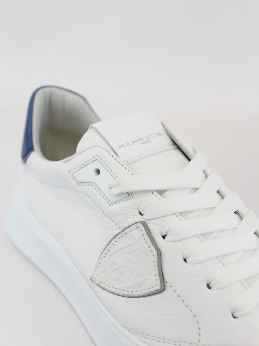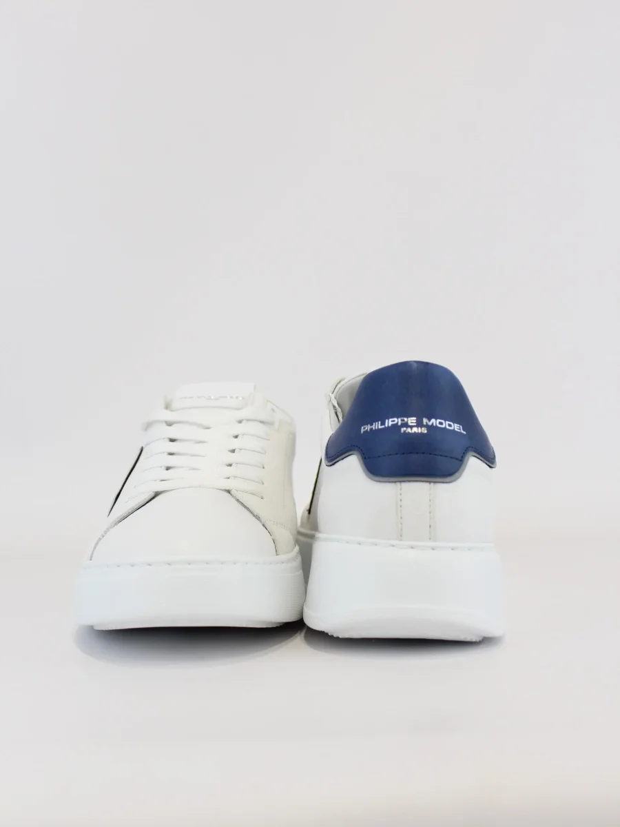 Sneaker Philippe Model total white, realizzata in morbida pelle di vitello, scudetto laterale iconico in contrasto, e suola bold in gomma ultra leggera, colore bianco e tallone in contrasto. Altezza suola 4 cm