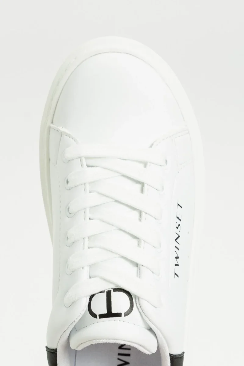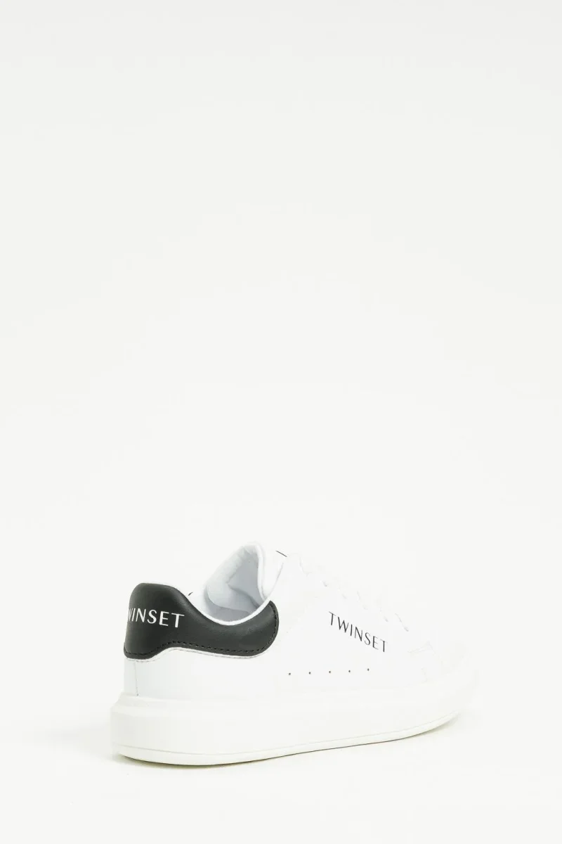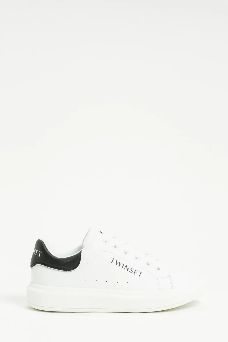 Sneakers Twinset Girl, modello in pelle con logo in contrasto laterale, tallone in contrasto, colore bianco