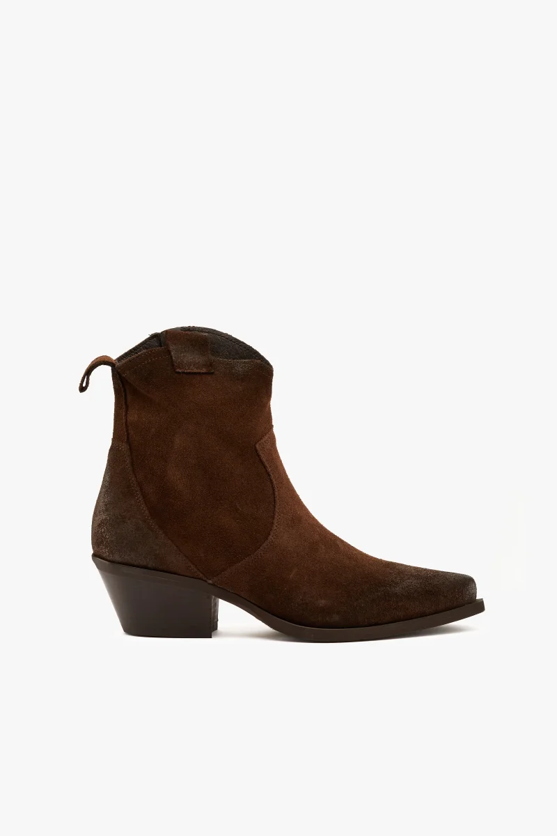 Stivaletto Layne Ralph Lauren, modello realizzato in morbida pelle scamosciata, tacco 7,5 cm, suola resistente in gomma, logo impresso sul retro, colore marrone