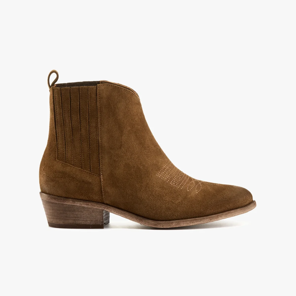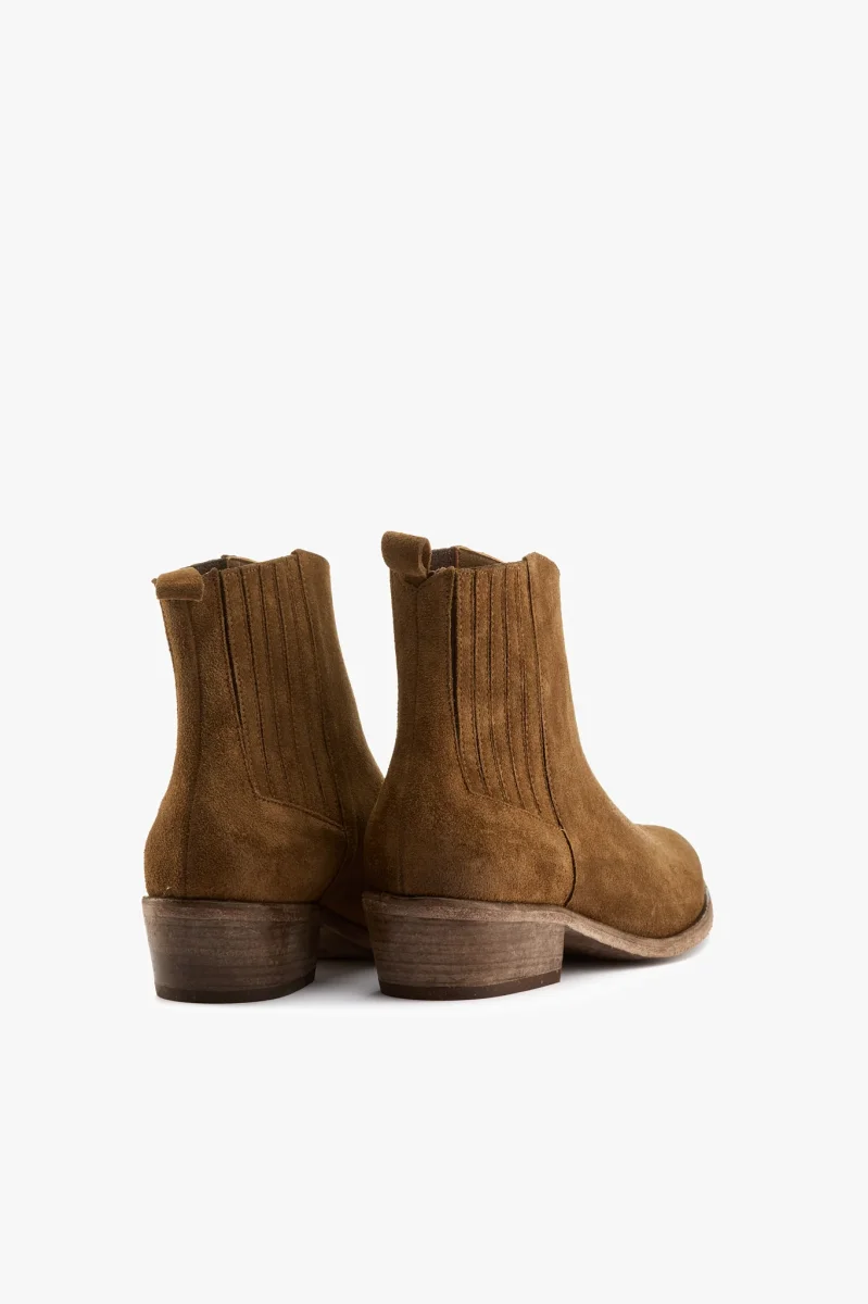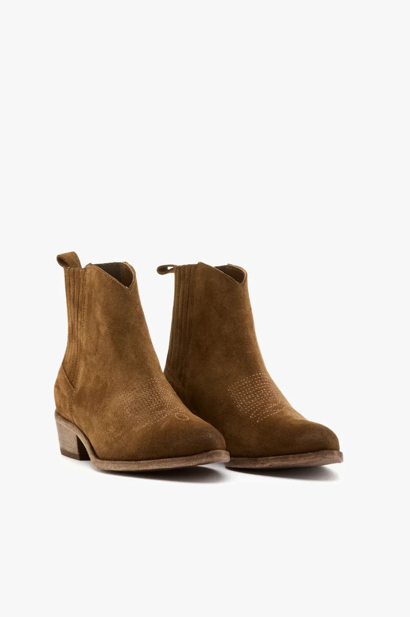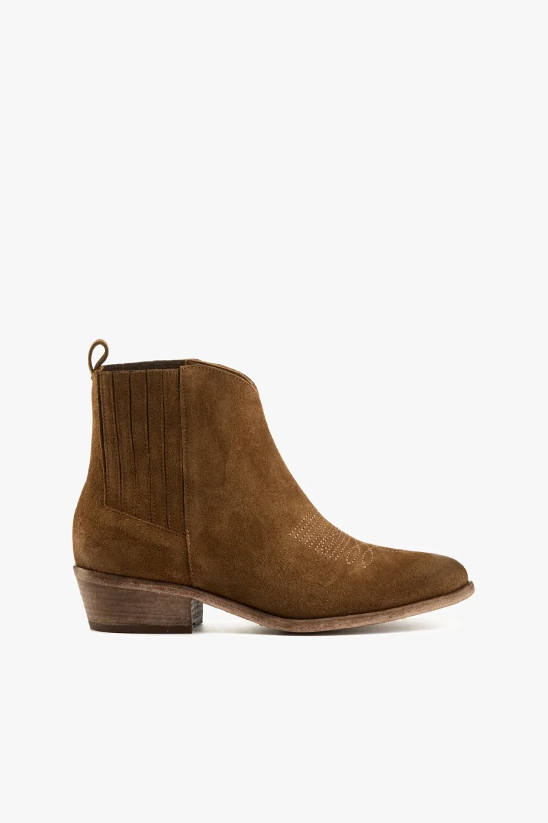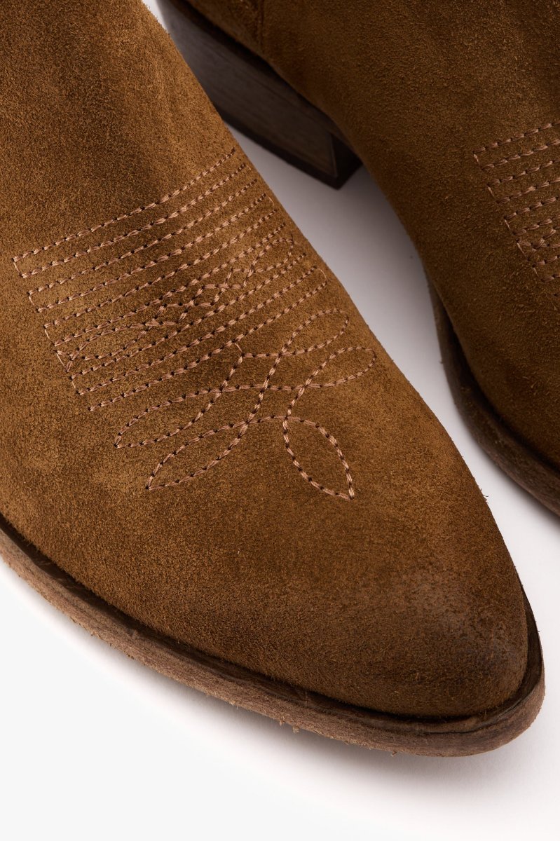Stivaletto texano in crosta cuoio con cuciture in tinta
