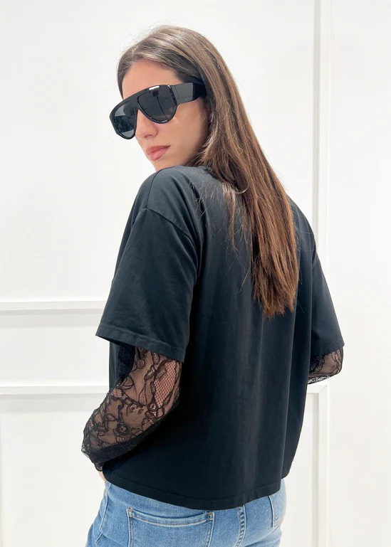 Descrizione: Maglia maniche corte e manica lunga in pizzo.