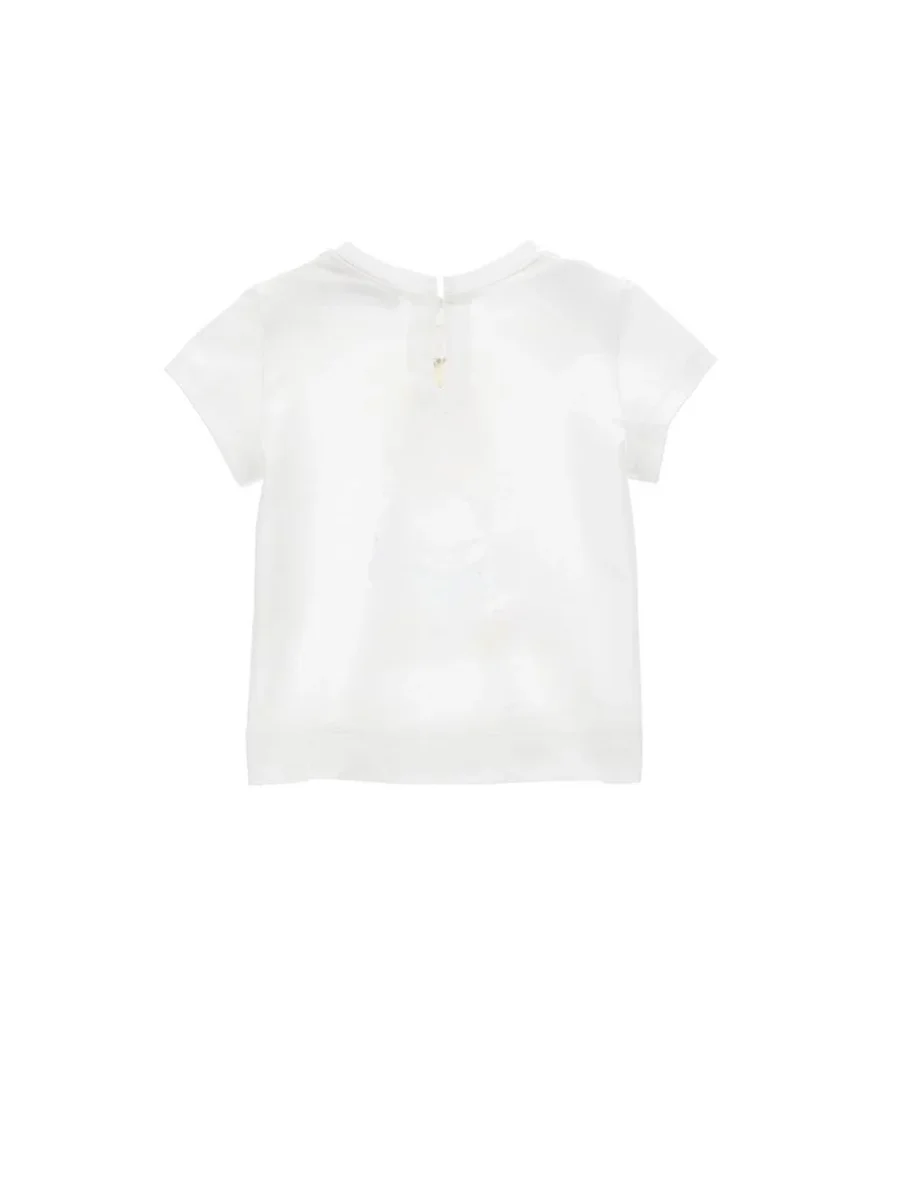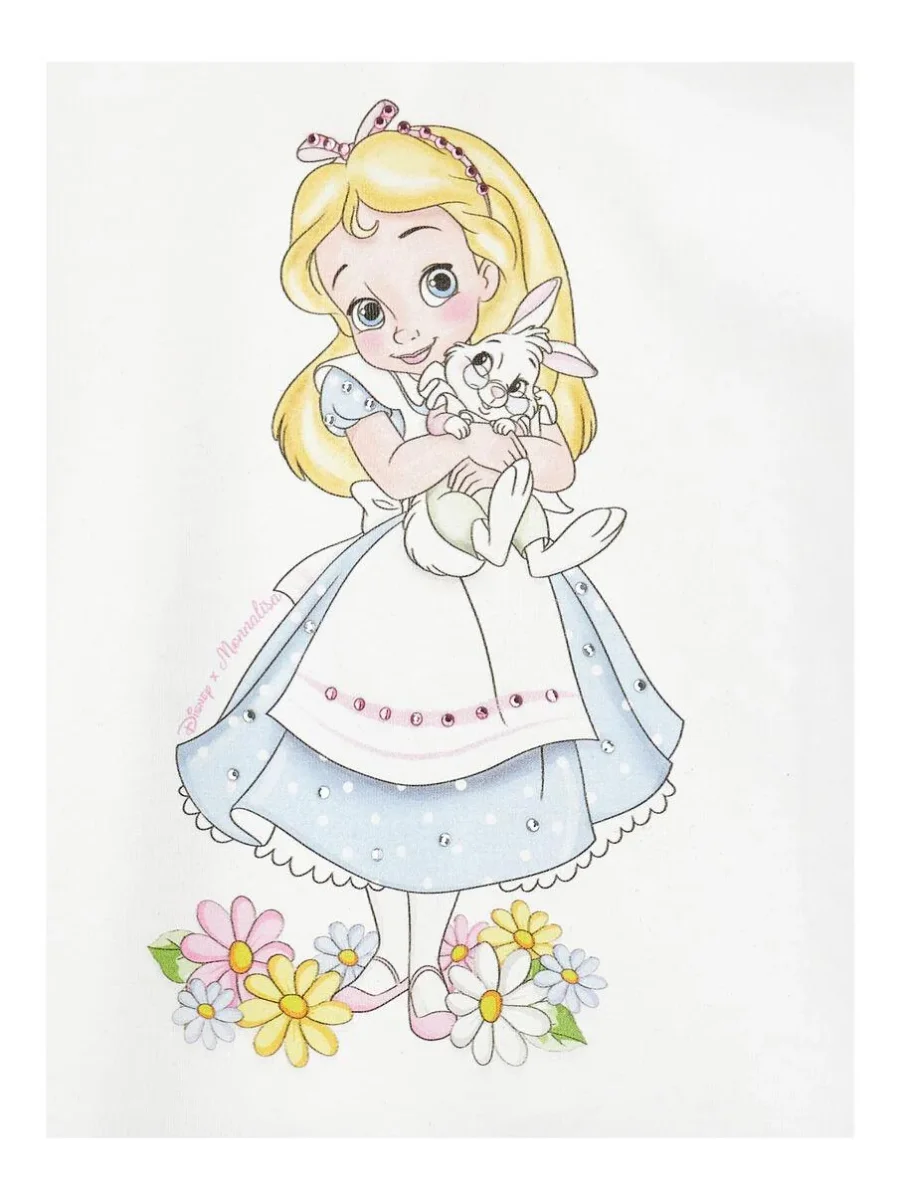 T-shirt Alice nel Paese delle Meraviglie, modello in jersey di cotone, maniche corte, chiusura con bottone sul retro, taglio regolare, colore bianco