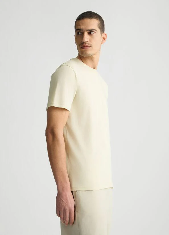 T-shirt in puro cotone, modello girocollo e maniche corte, dettaglio con logo in tono, colore beige
