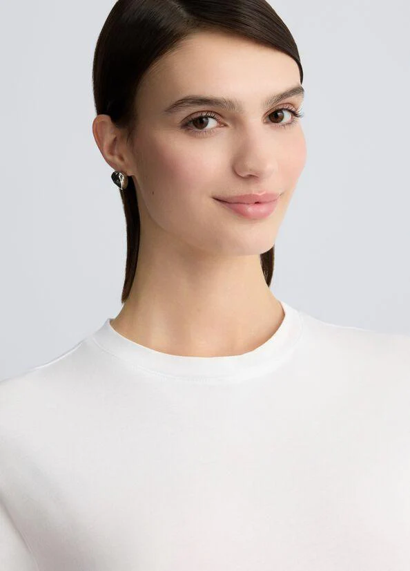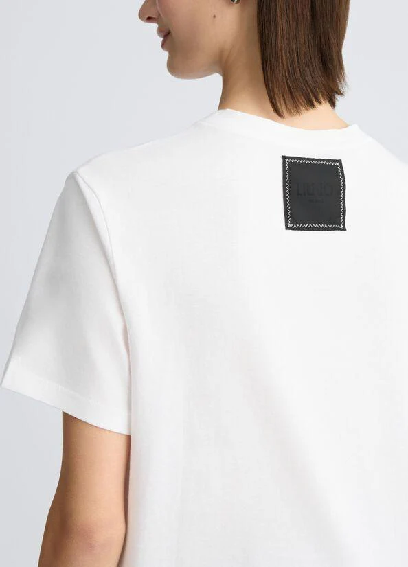 T-shirt in jersey di cotone Liu Jo, patch logata con ricamo sul retro, girocollo, maniche corte, colore bianco