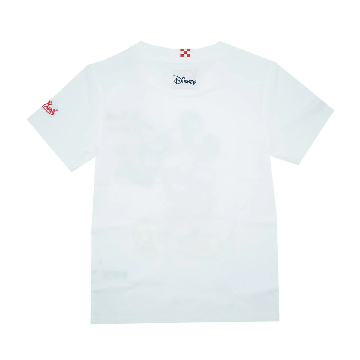 T-shirt boy Mc2 Saint Barth bambino, modello girocollo e maniche corte, dettaglio con stampa vespa in contrasto scritta sul petto e sulla manica