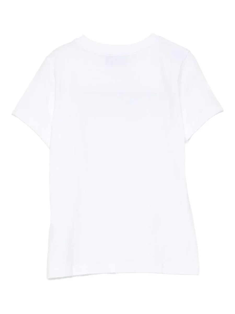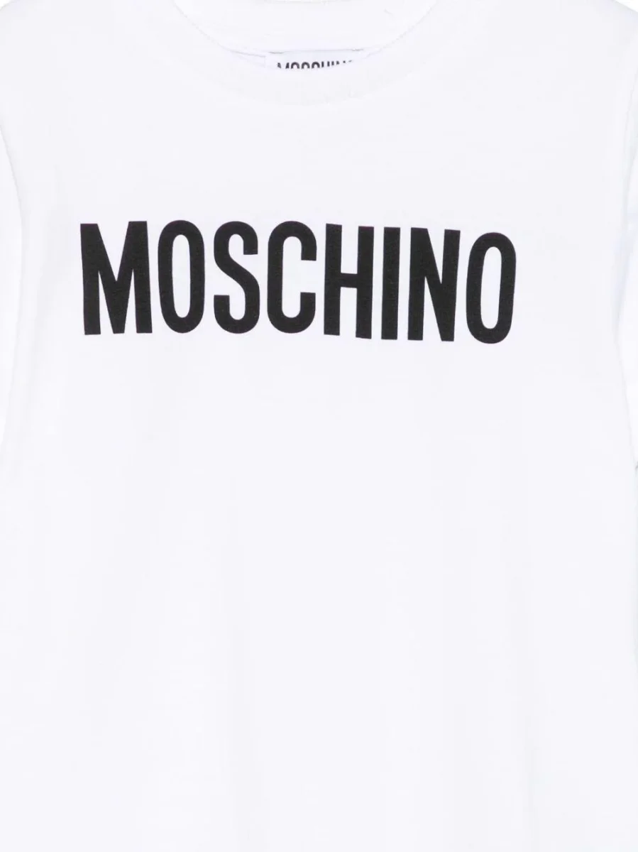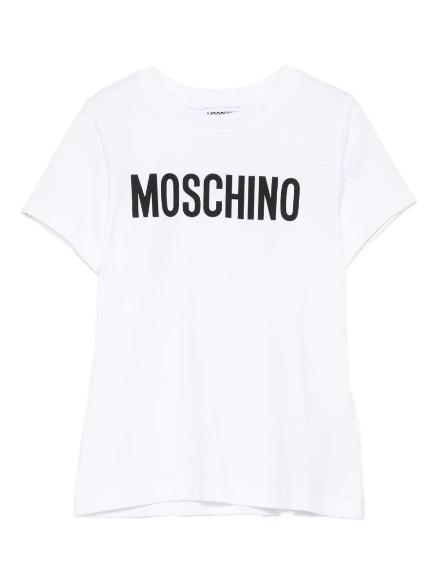 T-shirt Moschino Kids, modello girocollo e maniche corte, dettaglio con logo in contrasto sul davanti, colore bianco