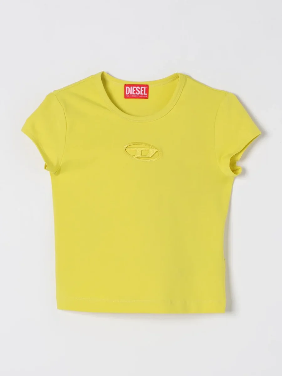 T-shirt Diesel bimba, modello girocollo e maniche corte, dettaglio con logo Oval D in tono, colore giallo