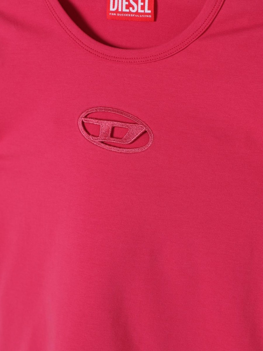 T-shirt Diesel bimba, modello girocollo e maniche corte, dettaglio con logo Oval D in tono, colore fucsia