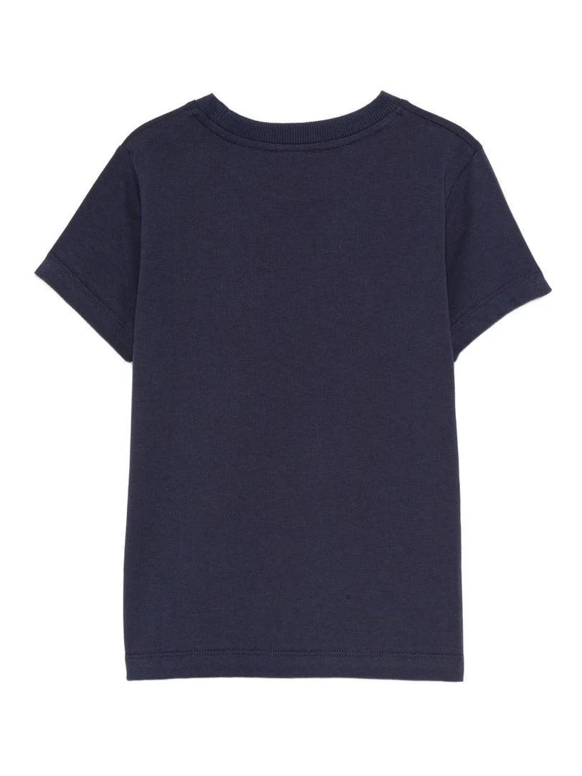 T-shirt teddy Moschino Kids, modello girocollo e maniche corte, dettaglio con ricamo sul petto in contrasto, colore blu