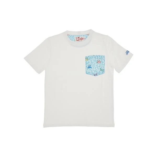 T-shirt Mc2 Saint Barth bambino, modello con taschino crab in cotnrasto, girocollo con stampa interna, colore bianco