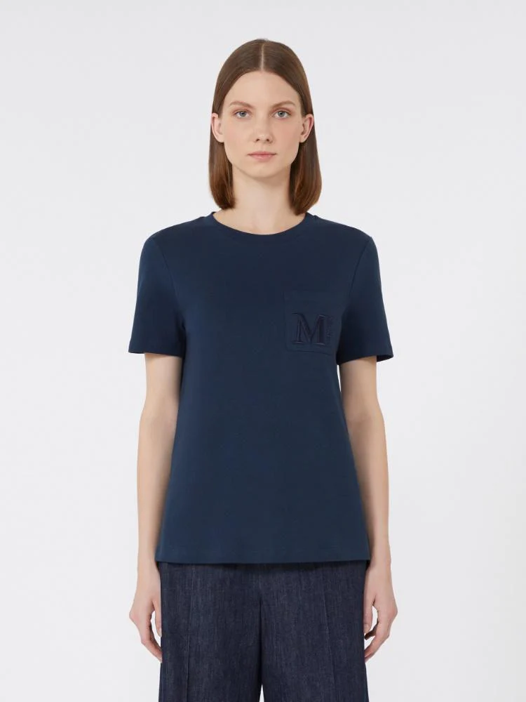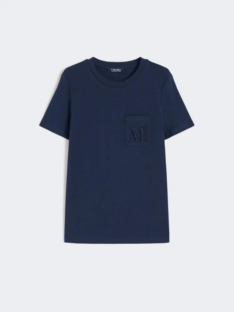 T-shirt in jersey di puro cotone, maniche corte e girocollo, dettaglio con taschino applicato e logo in tono, colore blu