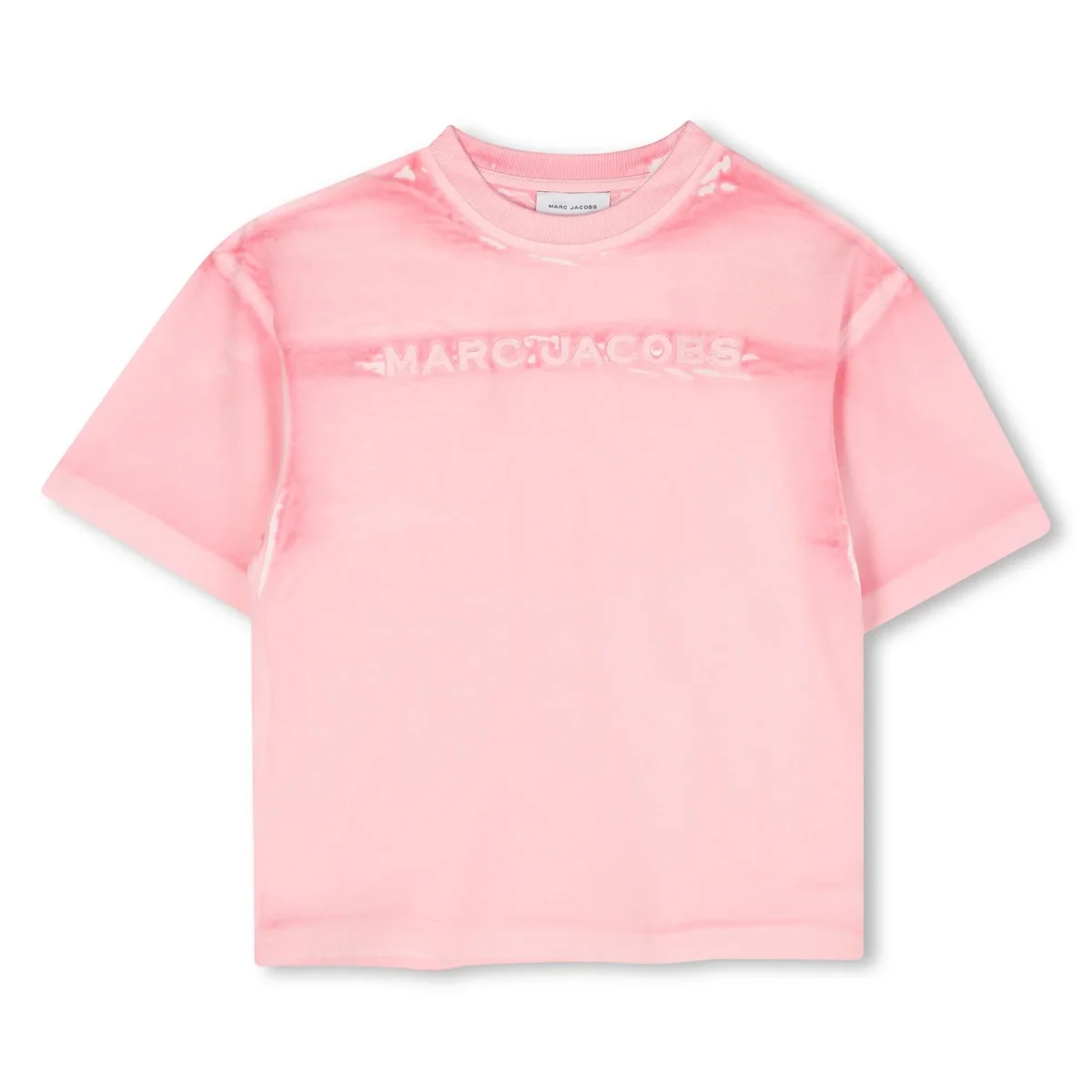 T-shirt Marc Jacobs Kids, modello girocollo e maniche corte, dettaglio logato al centro, colore rosa sbiadito