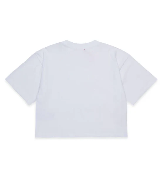 T-shirt Diesel bambina, girocollo e maniche corte, girocollo e orlo a costine, logo ricamato sul davanti, colore bianco