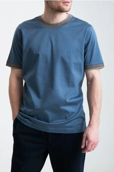 T-shirt in filo di scozia Gransasso, modello con inserti a coste in contrasto colore su scollo e maniche, effetto seta.