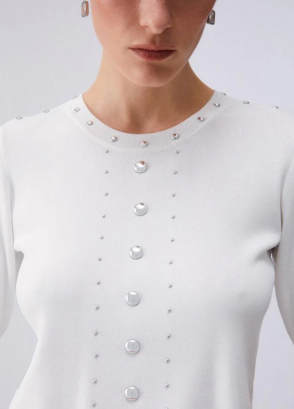 Top nero in maglia Liu Jo, modello con applicazioni borchie, girocollo e maniche corte, colore bianco