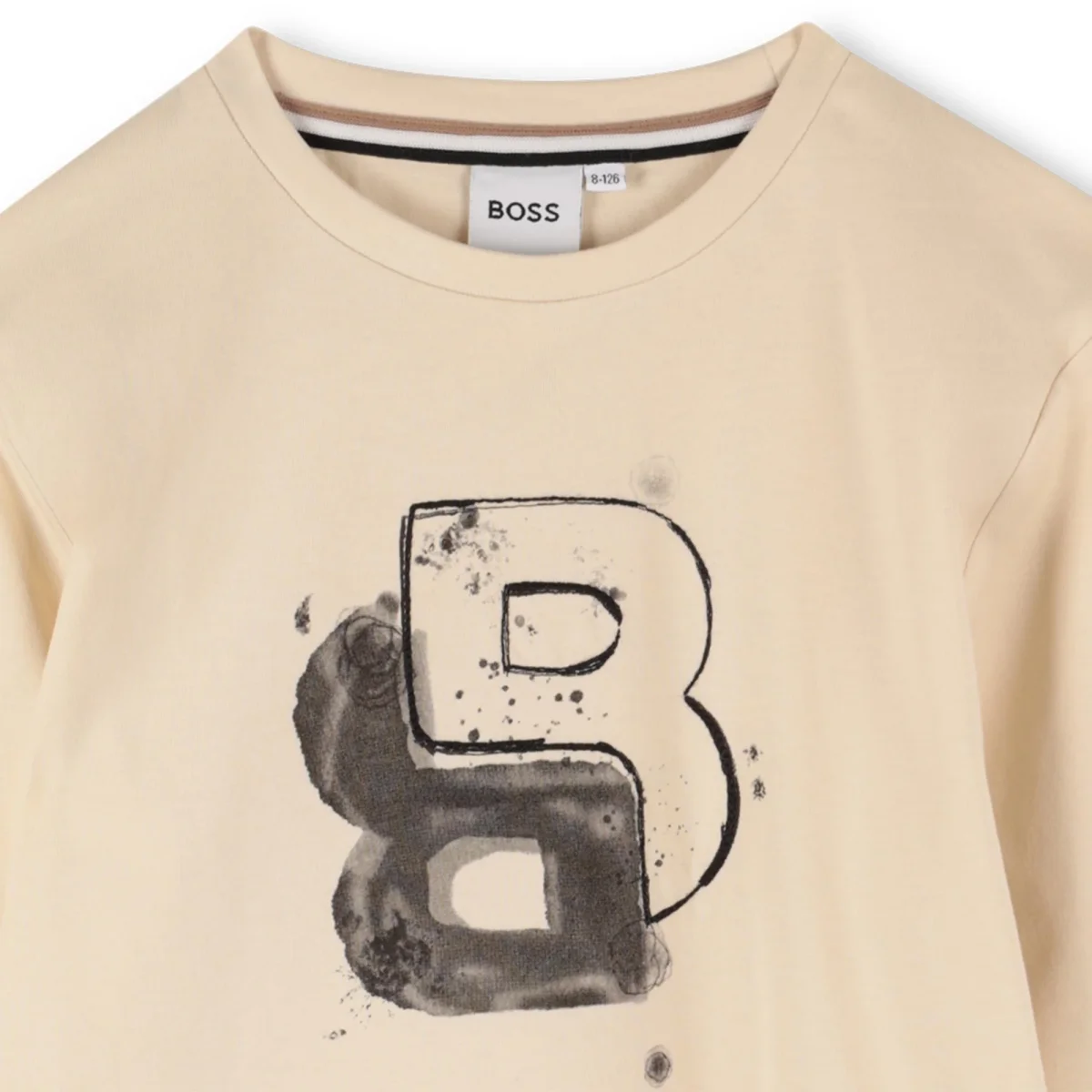 T-shirt Boss, modello girocollo e maniche lunghe, dettaglio con logo singola B in contrasto, colore beige