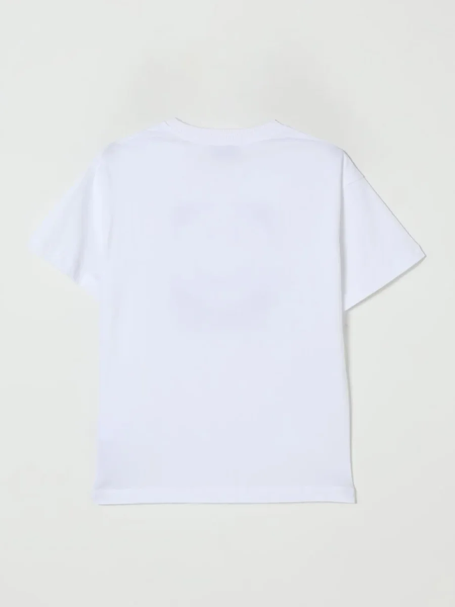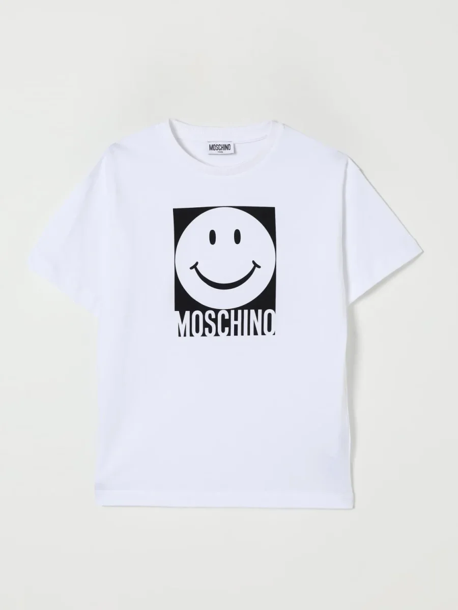 T-shirt Moschino Kids, modello girocollo e maniche corte, dettaglio con stampa logo smile in contrasto, colore bianco