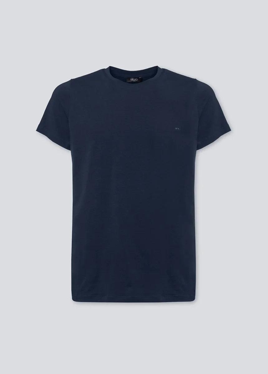 T-shirt Liu Jo uomo, girocollo, maniche corte, e logo in tono sul petto. Colore blu