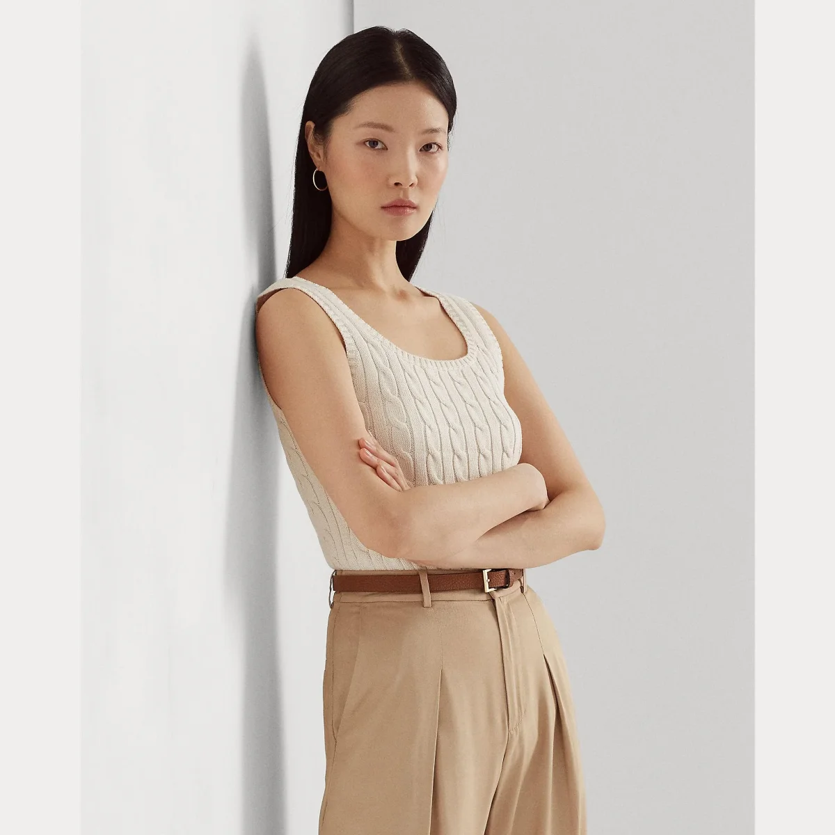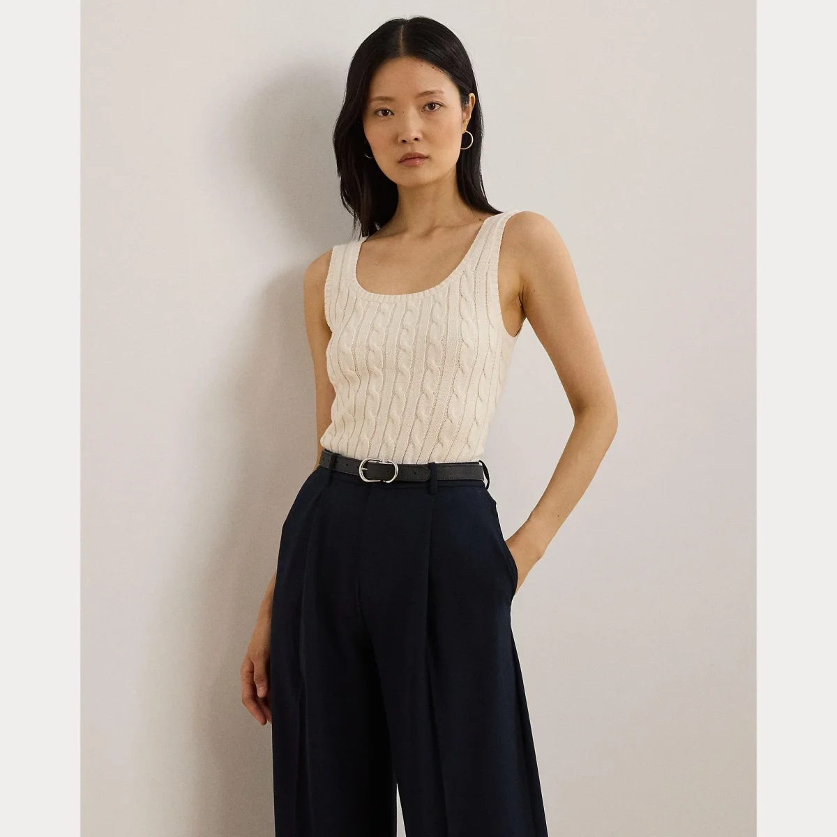 Top in maglia Lauren Ralph Lauren, slim fit, scollo quadrato, modello senza maniche, realizzato in cotone, logo in tono, colore bianco