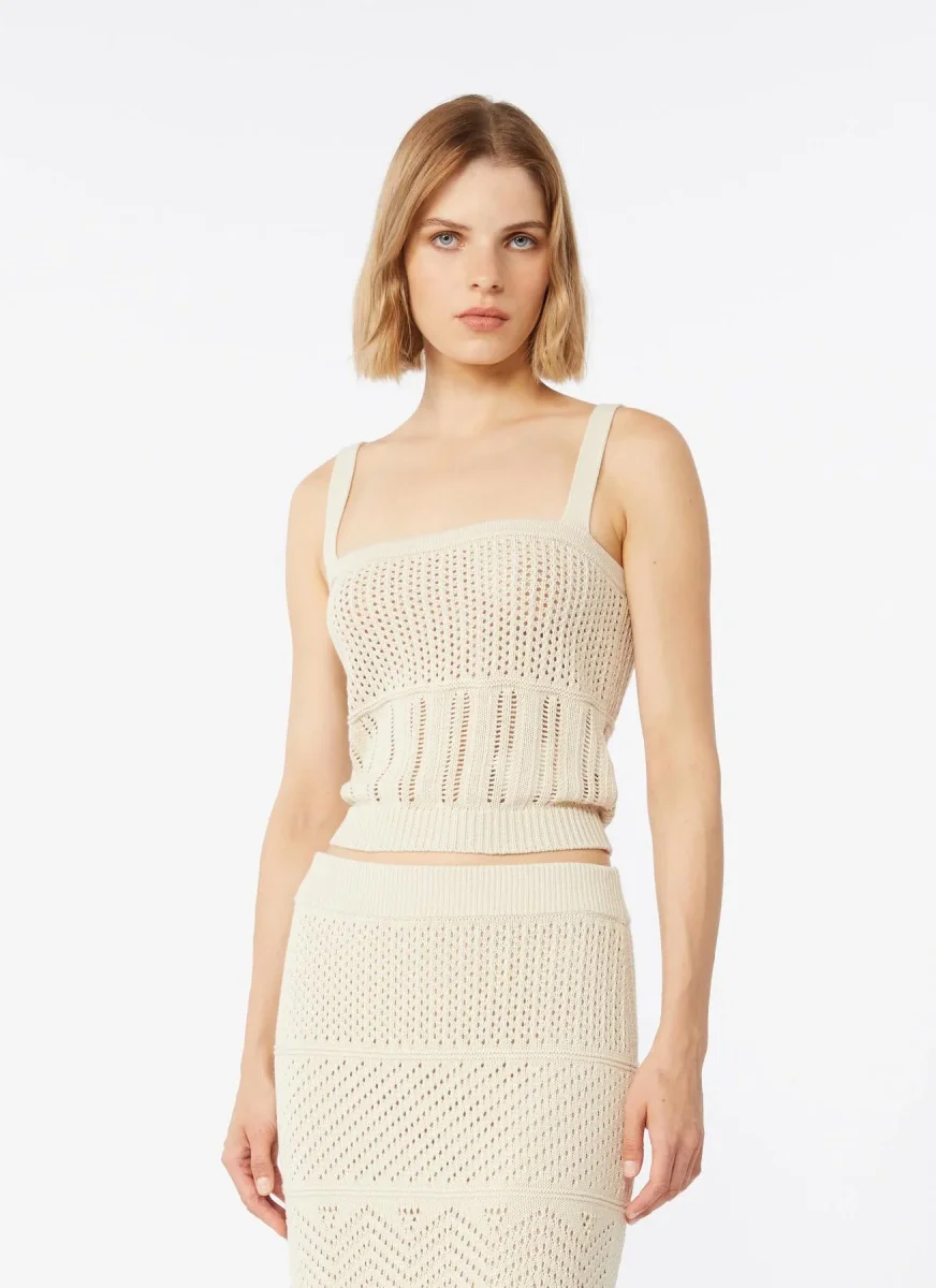 Top Max Mara Studio, modello in filato di misto cotone, scollo dritto, spalline larghe e bordo rifinito a costine, color corda