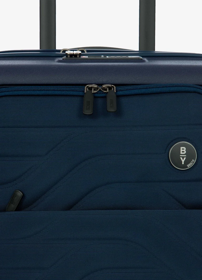 Trolley da cabina espandibile con tasca della collezione Ulisse B|Y Bric’s. Questo bagaglio assicura robustezza e un design sofisticato, grazie all’abbinamento tra il polipropilene del guscio rigido e il tessuto morbido ma resistente con cui è costruita la tasca frontale, che rivela una tasca imbottita porta pc e tablet, con nastro di protezione. Chiusura lampo con serratura TSA a combinazione integrata nel guscio. Zip per ampliare la profondità del trolley di 4 cm all’occorrenza. MANIGLIA: comoda e funzionale maniglia di traino con tubi in alluminio, con tre posizioni di stop intermedio attivabili con un bottone a pressione. compartimento con zip e tasca piatta a rete da un lato, nastri per bloccare l’abbigliamento dall’altro. RUOTE: quattro ruote doppie incassate per ottimizzare il volume del bagaglio, permettono un’agevole rotazione a 360° assicurando la massima silenziosità grazie al loro rivestimento in gomma.