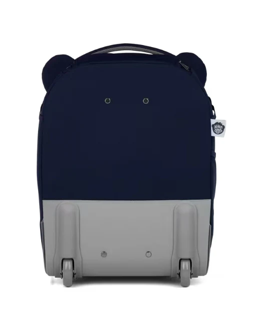 Trolley bimbo a forma di orsetto, linguetta porta nome privacy, manico regolabile, ruote al fondo, scompartimento interno, colore blu