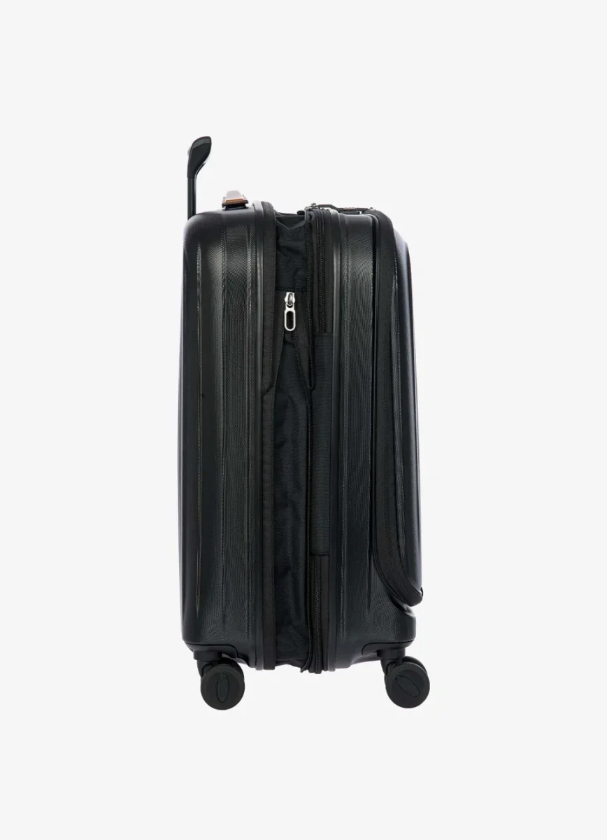 Taormina è il trolley ultraleggero di Bric’s, in policarbonato resistente a urti e graffi. L’interno è pensato per offrire praticità : la superficie è facile da pulire, zip e cinghie ferma abiti aiutano l’organizzazione del bagaglio. Inoltre, la capienza è massimizzata dall’espansione, da aprire all’occorrenza. La serratura TSA e la lampo anti-intrusione proteggono entrambi gli scompartimenti: quello principale ed anche quello frontale con tasca dedicata al laptop. Porta USB integrata. Le doppie ruote silenziose, il sistema di traino multistop e la maniglia superiore in morbida pelle, garantiscono il comfort di utilizzo