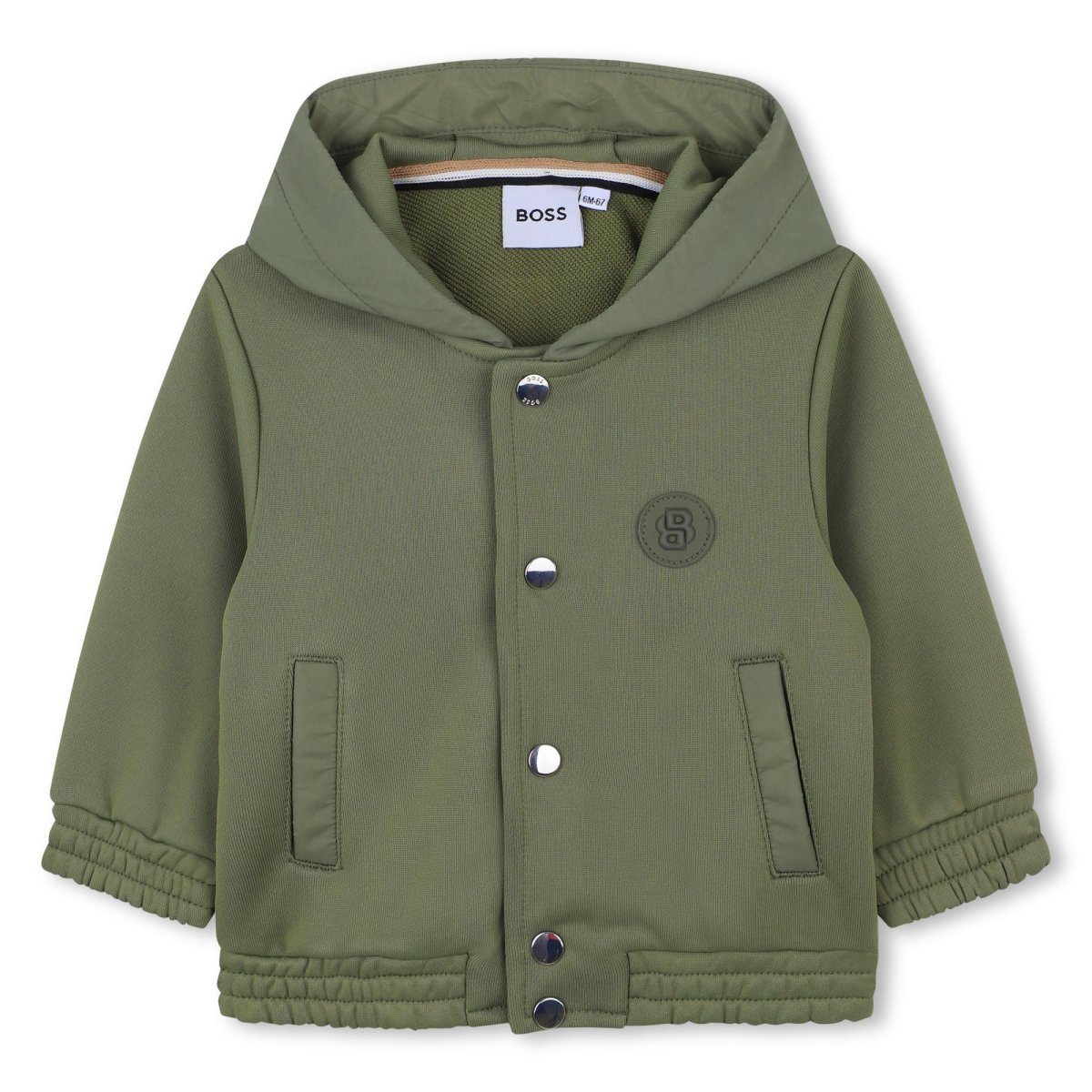 Tuta Boss bambino, modello con felpa chiusura bottoni e patch petto, tasche applicate, pantalone con vita elasticizzata, colore verde