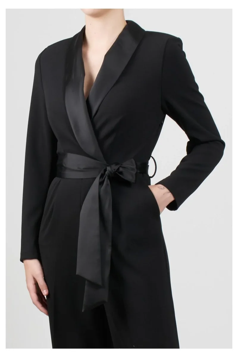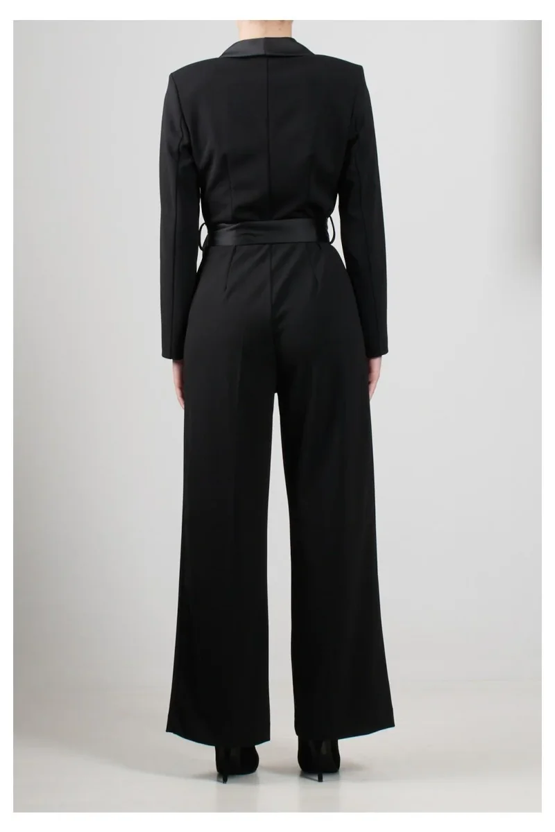 Tuta Vicolo donna, modello con scollo ampio a V, dettaglio cinta in vita, colore nero