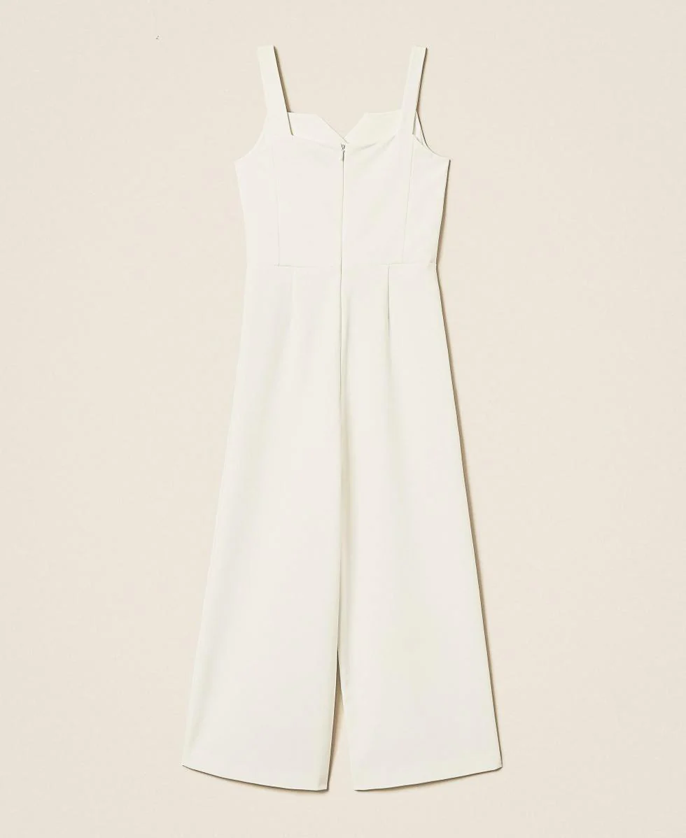 Tuta Twinset Girl bimba, modello in crepe con corpetto lavorato a doppiopetto, con bottoni in tono, spalline, chiusura con zip invisibile sul retro, colore bianco