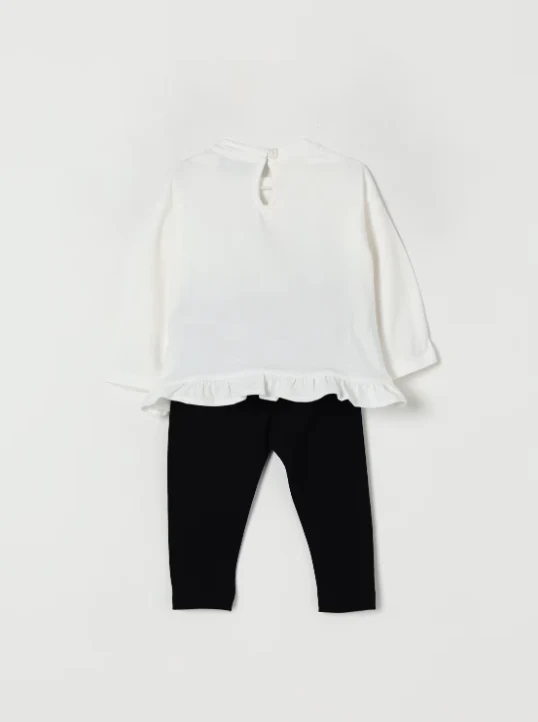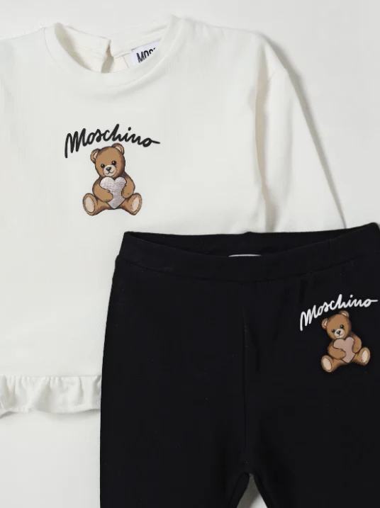Tuta Moschino Kids bambina, modello con t-shirt maniche lunghe e logo orsetto, leggins elasticizzato, colore bianco e nero