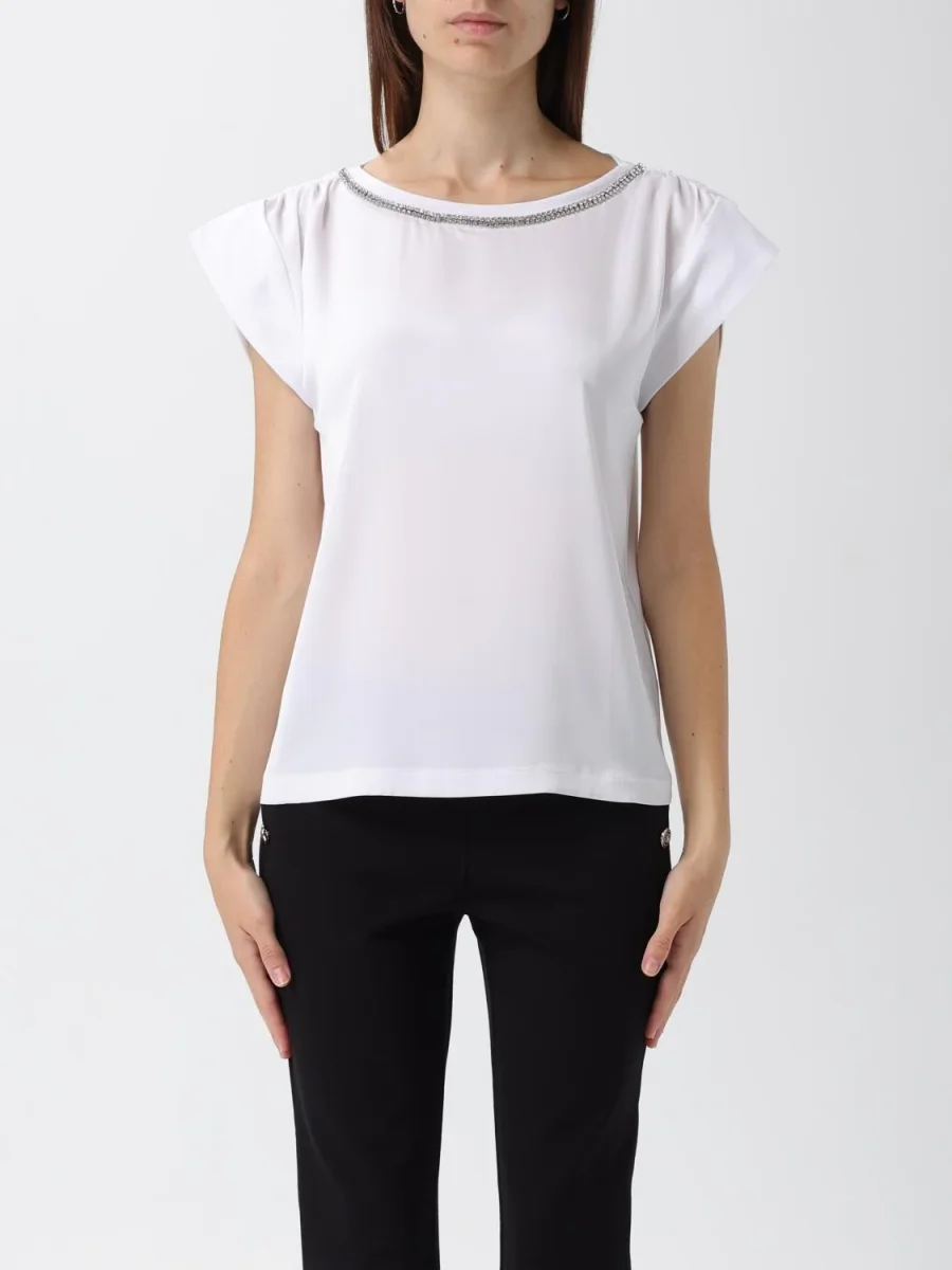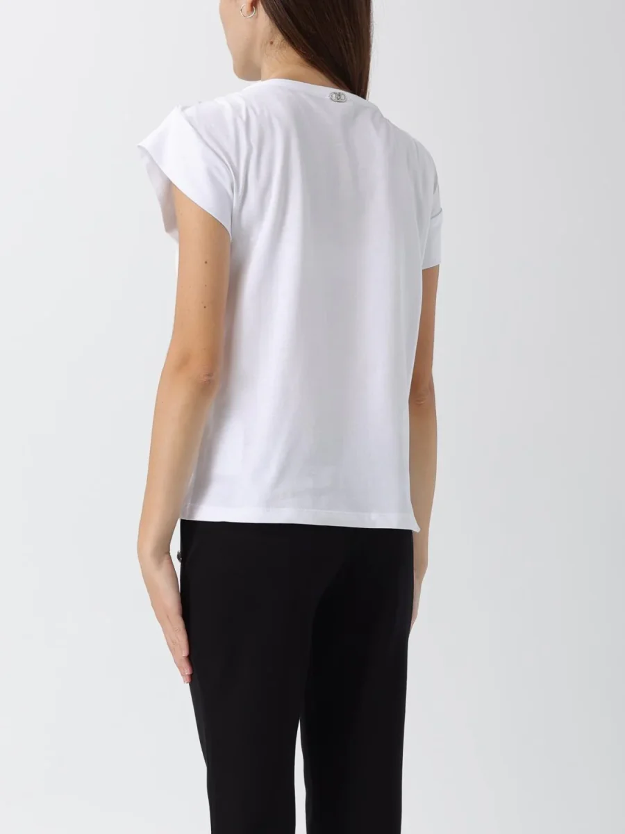 T-shirt Liu Jo Denim, modello con mancihe ad aletta, dettaglio collo gioiello in contrasto, colore bianco
