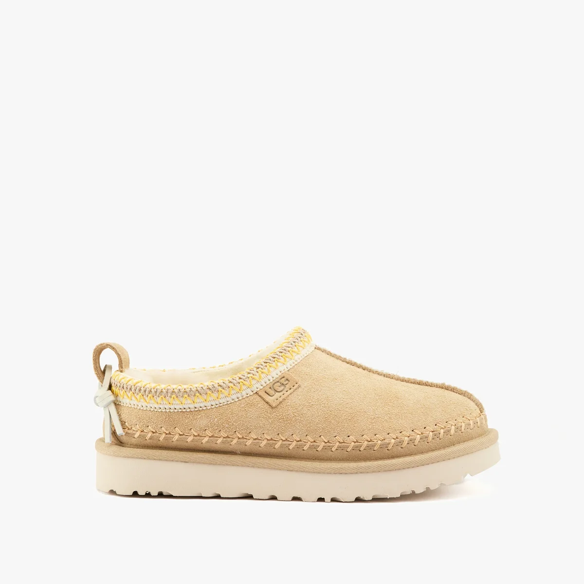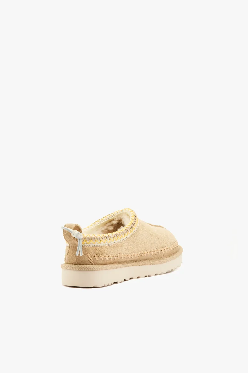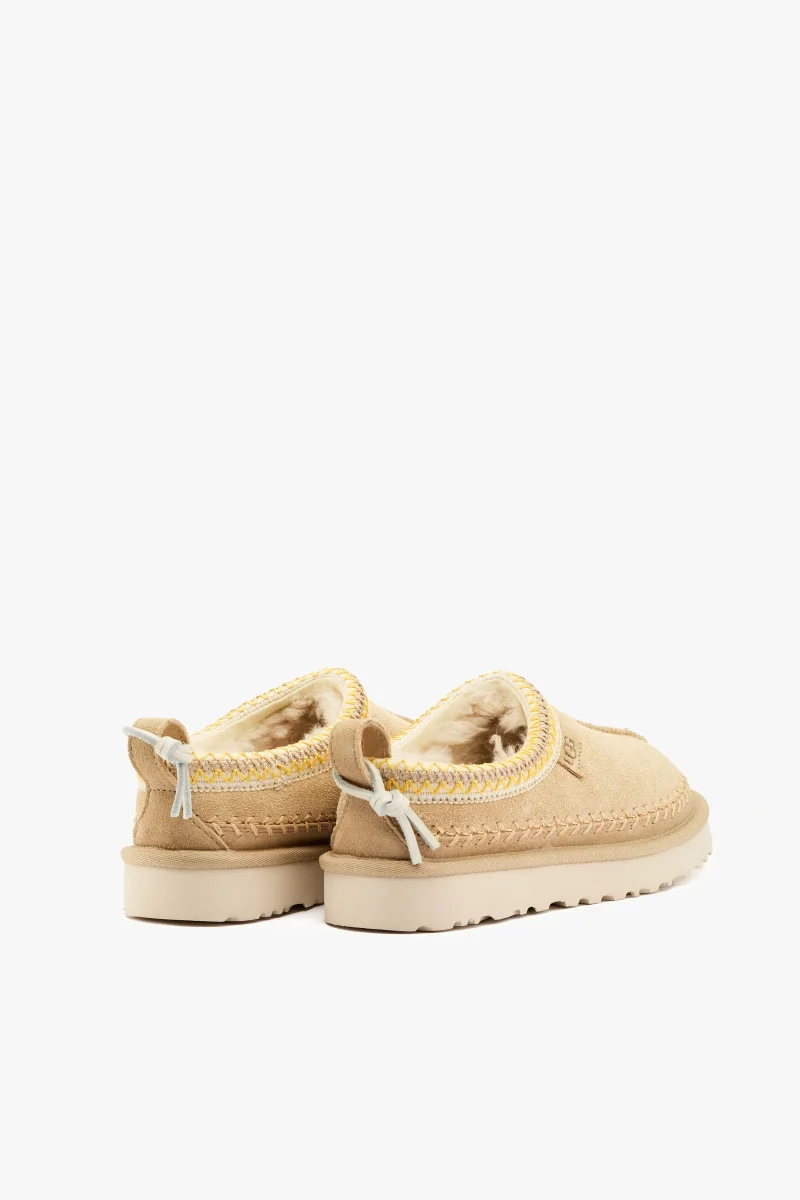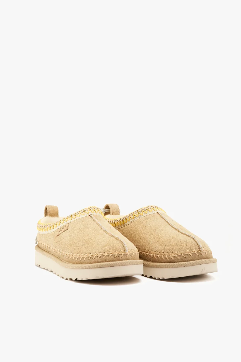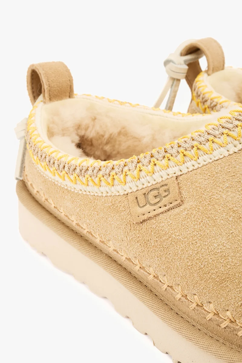 Ciabatta tasman biarritz in camoscio mustard seed con ricamo e cucitura