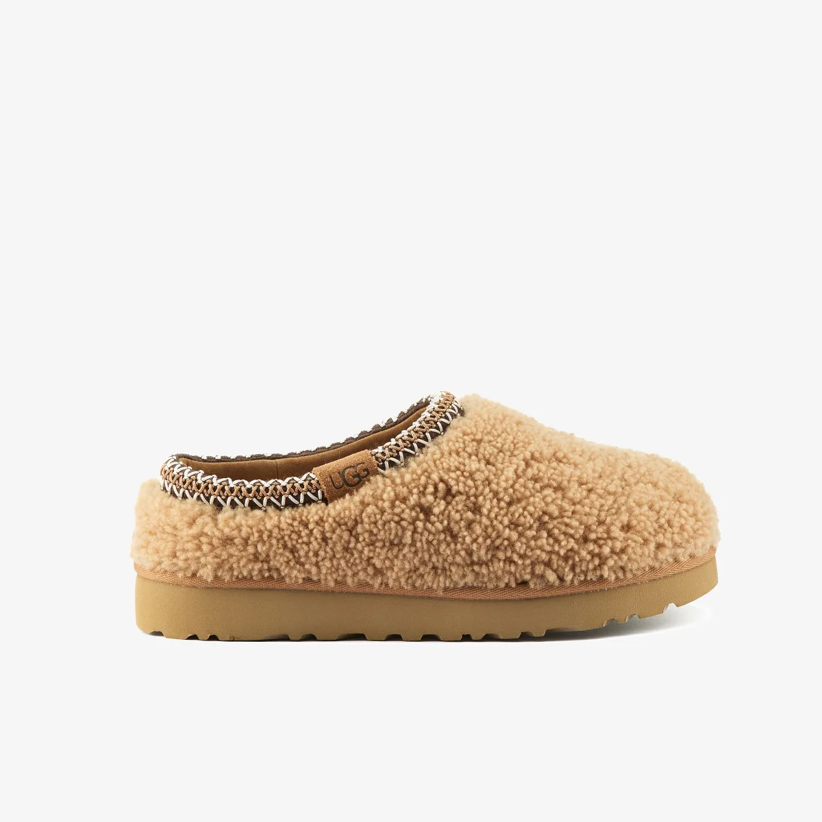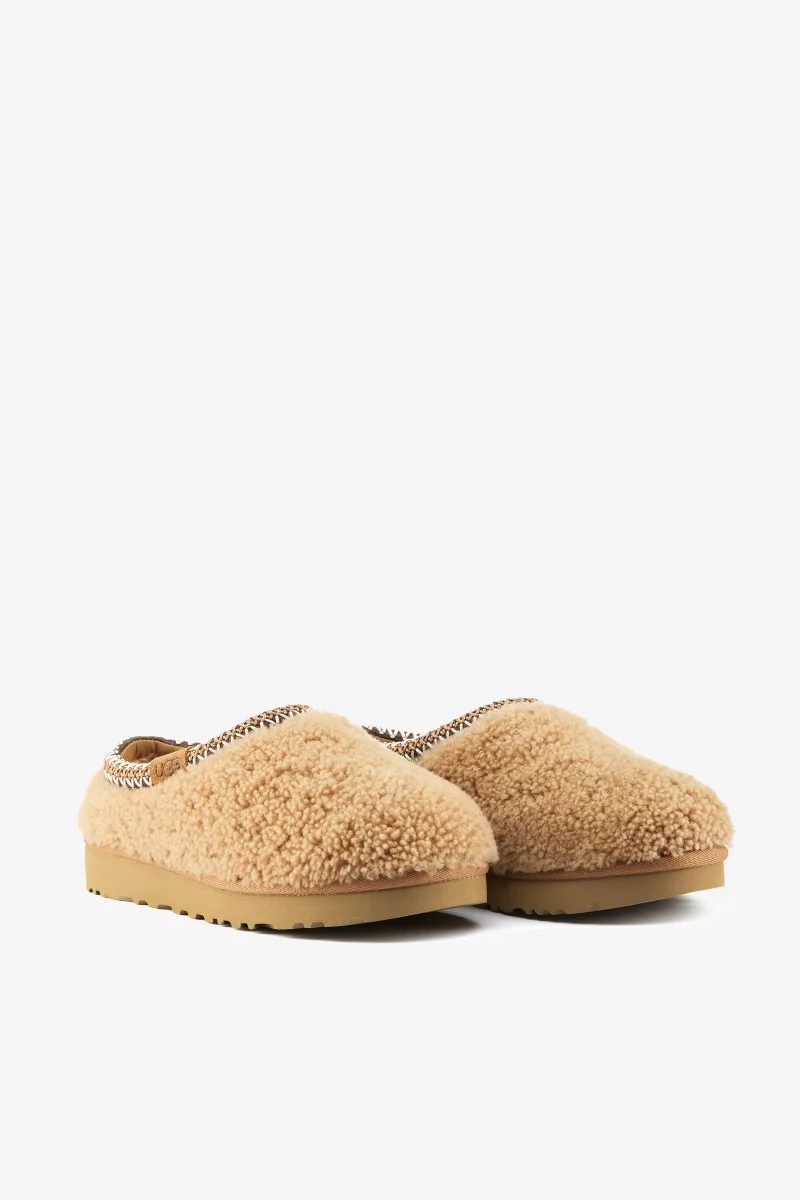Ciabatta Tasman in montone arricciato chestnut con ricamo