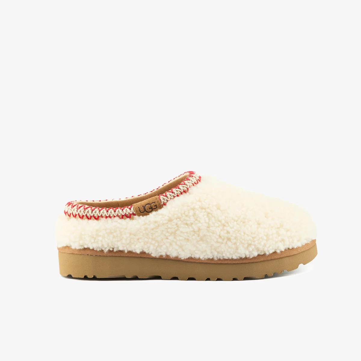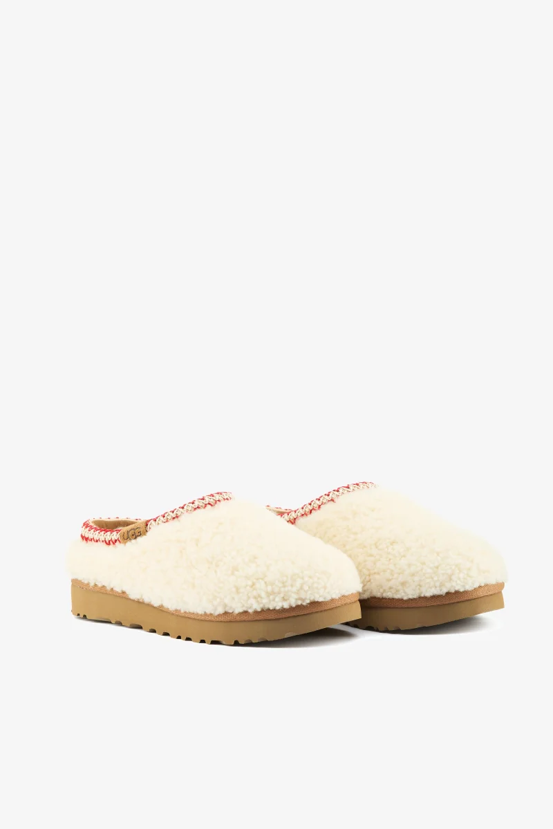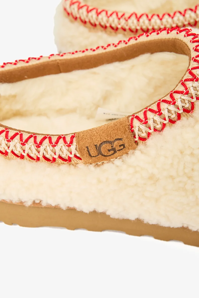 Ciabatta Tasman in montone arricciato natural con ricamo