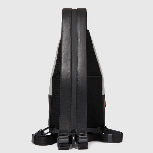 Zaino monospalla Piquadro, realizzato in pelle linea Urban, scompartimento interno porta Ipad mini, tasche per air pods e connequ, doppia portabilità posteriore sia a zaino che a monospalla