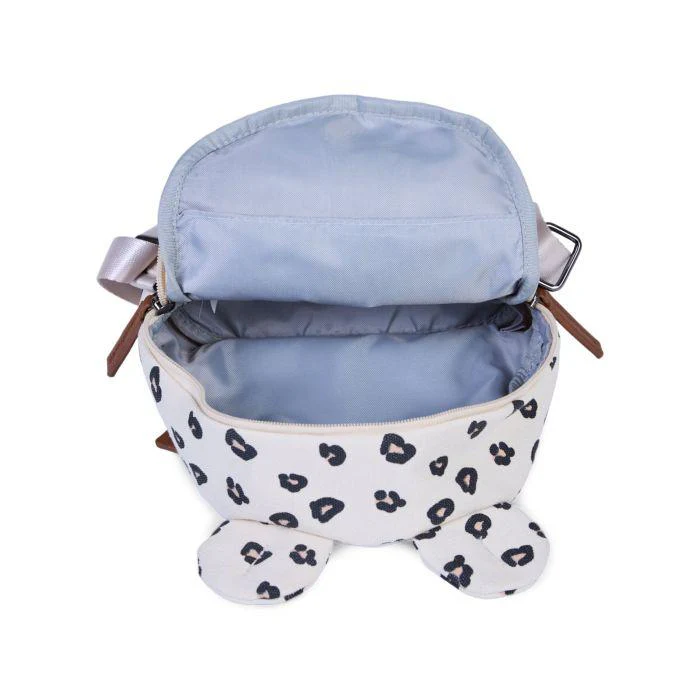Zaino my first bag Childhome, scompartimento abbastanza ampio, fibbia di sicurezza rimovibile e regolabile, chiusura con zip, logo in contrasto e fantasia leopard